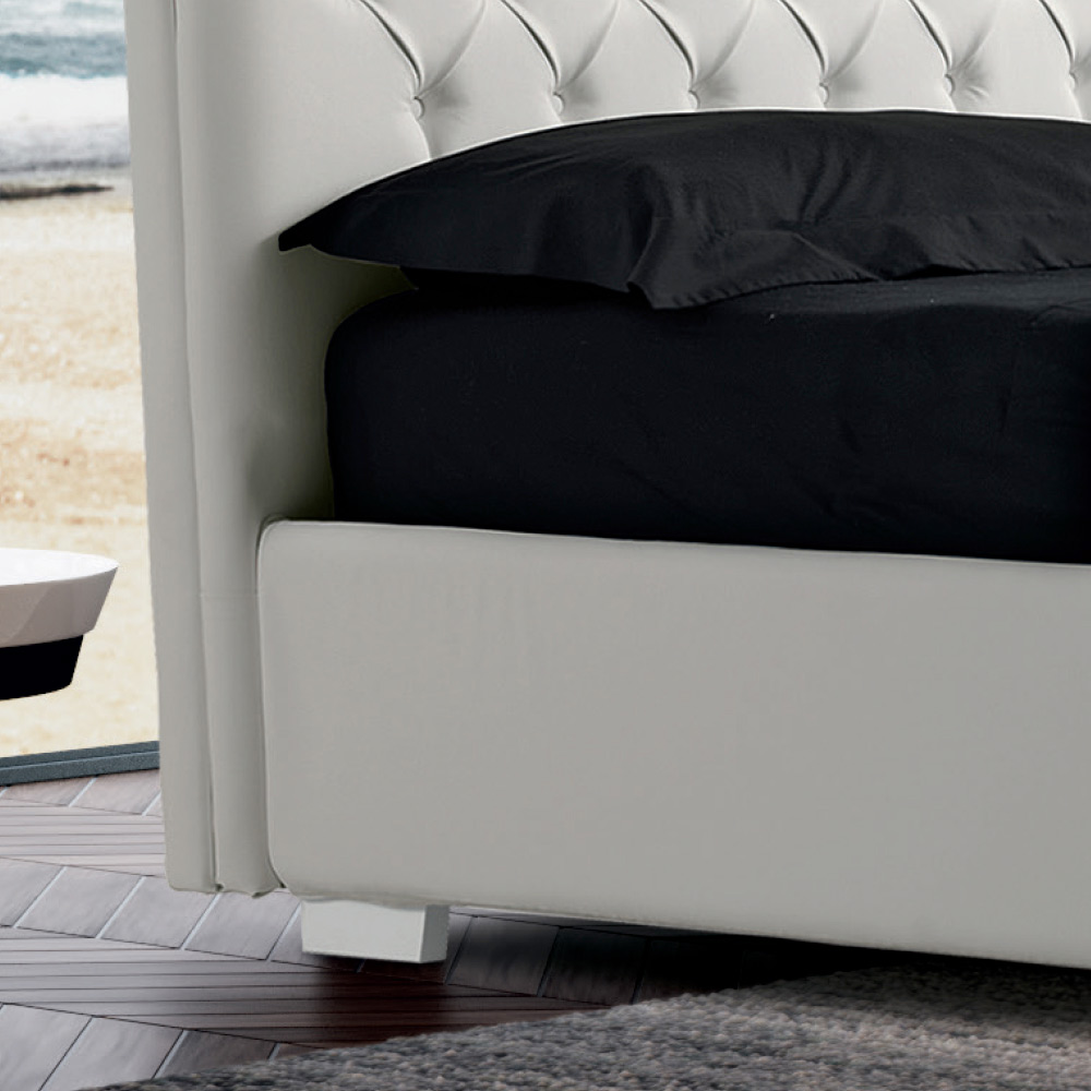 Krevat dopio i veshur me susta i veshur me eko-lekure, me kuti magazinimi, prodhim Italian.