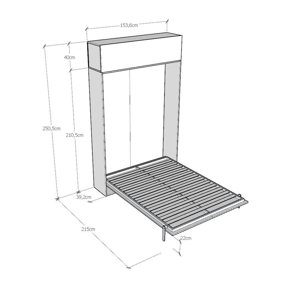 Korniza e krevatit është bërë nga pllaka grimcash melamine me trashësi 18 mm , duke siguruar rezistencë dhe qëndrueshmëri me kalimin e kohës. Mekanizmi i hapjes është i lëmuar dhe i sigurt, duke e transformuar murin në një krevat të rehatshëm me një gjest të thjeshtë.