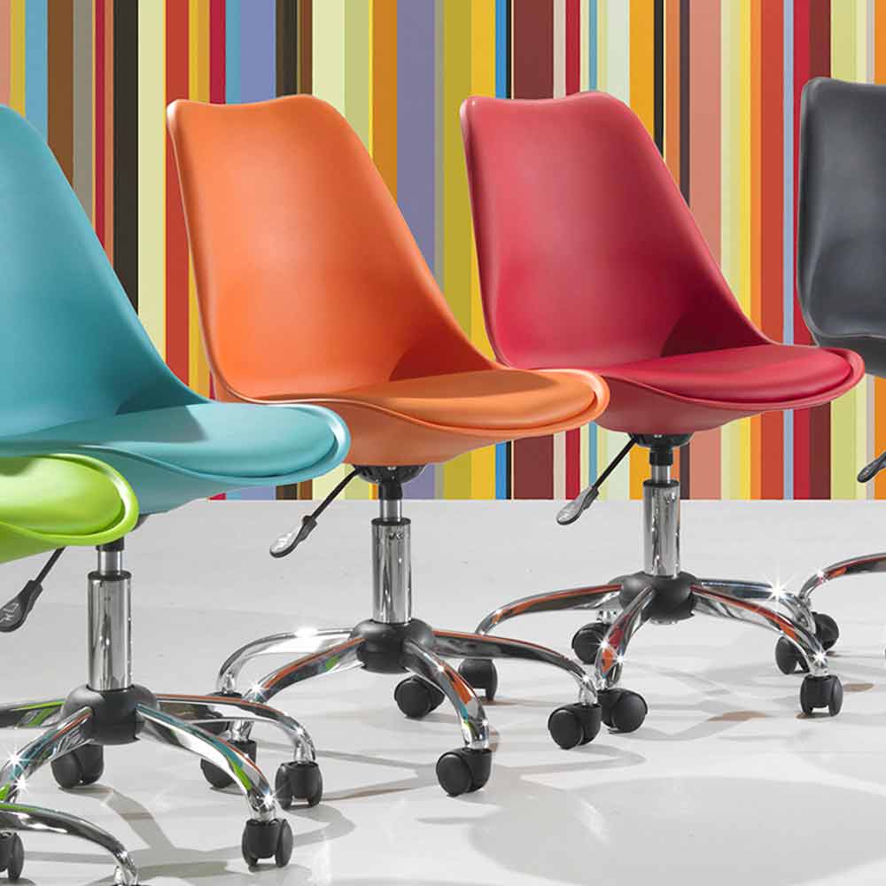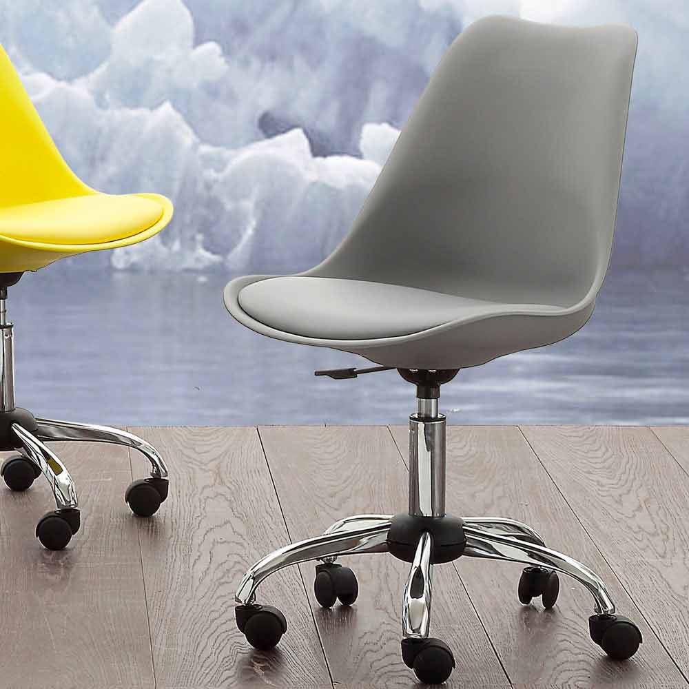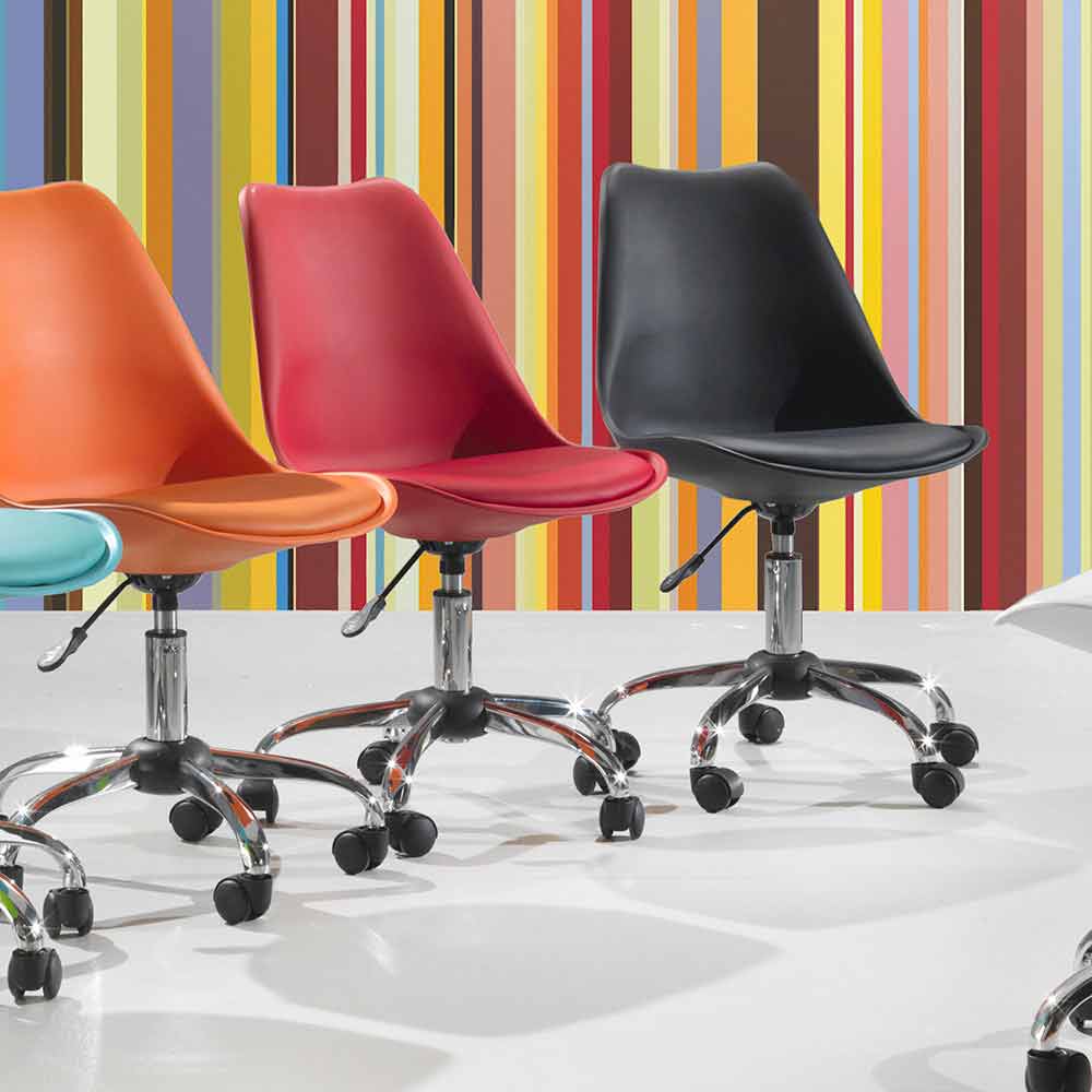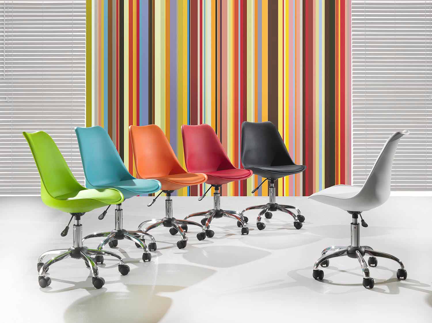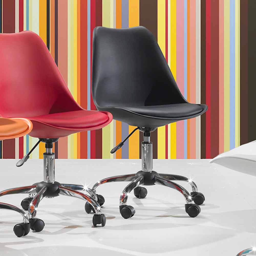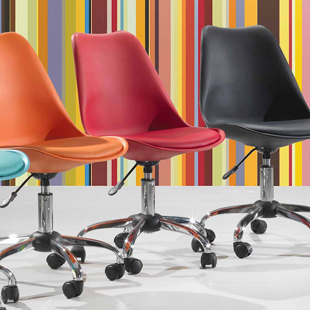 Karrige zyre Loredana është ideale për të siguruar rehati maksimale gjatë orarit të punës falë sediljes së saj me ngritës gazi. Prodhuar me një vend polipropileni dhe është e rehatshme nga një jastëk eko- lëkure që përputhet me sediljen dhe bazën metalike të kromuar me rrota.