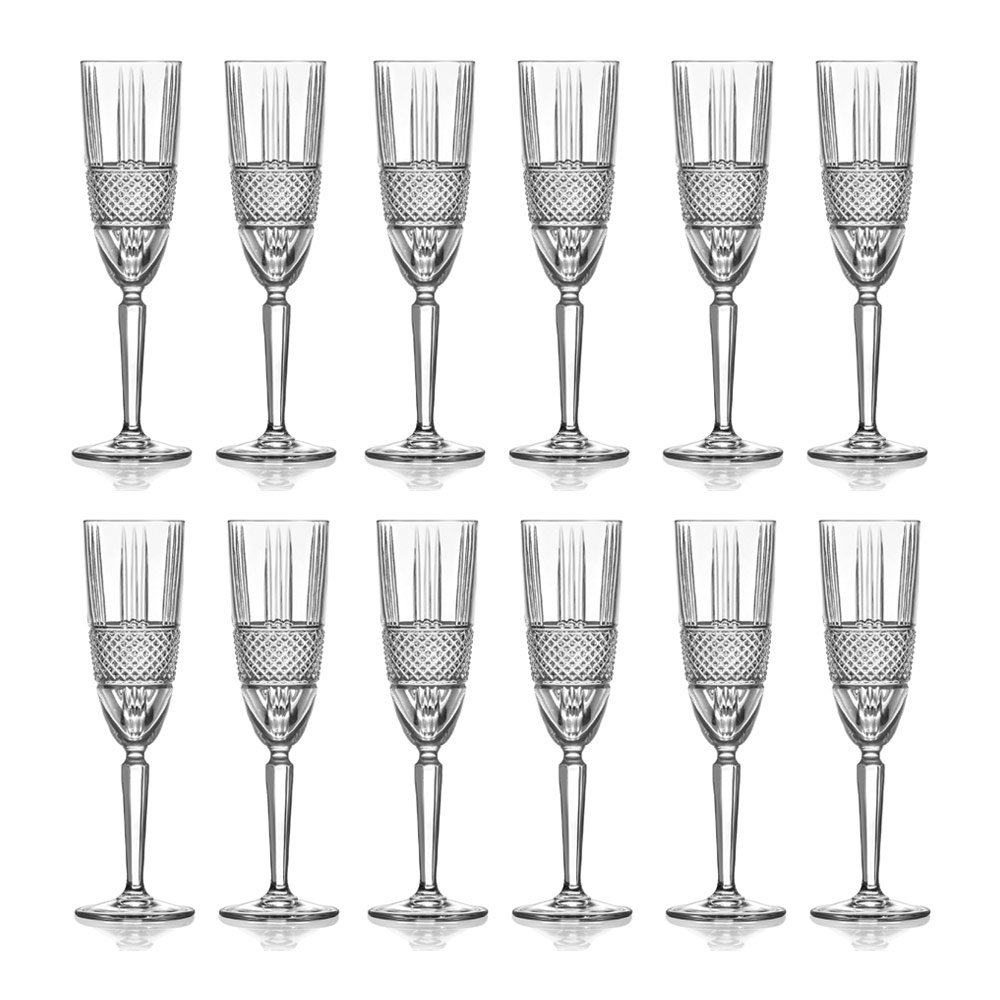 Set i kupave të flautit në eko kristal të prerë me diamant, 12 copë të prodhuara në Itali.
