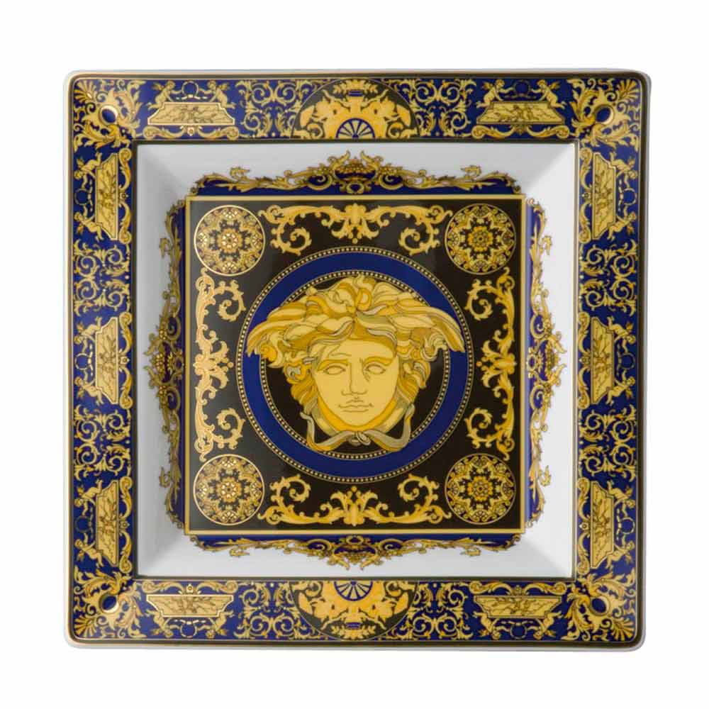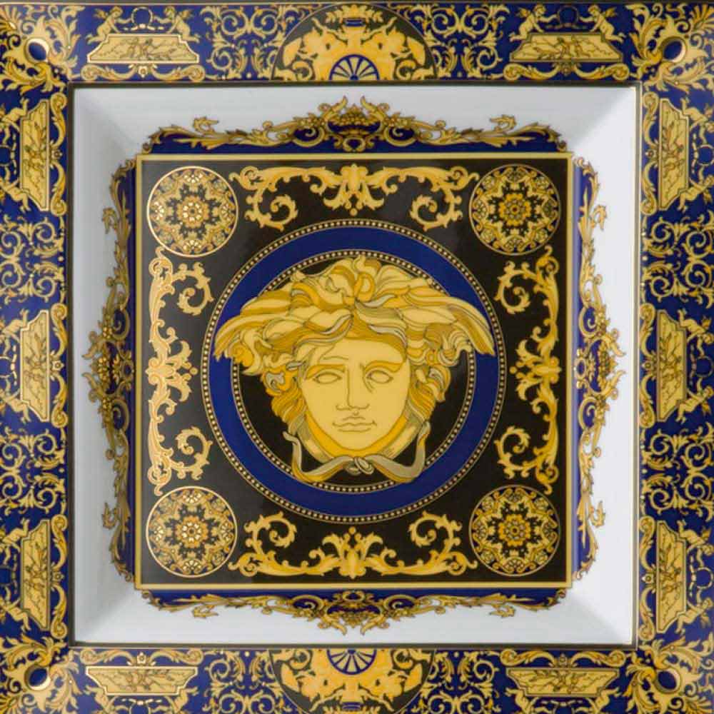 Medusa - Rosenthal takohet me Versace: Shërbimi i parë prej porcelani nga Versace Versace dhe Rosenthal janë të dyja sinonime të përsosmërisë dhe cilësisë së lartë. Rosenthal ia detyron famën e saj mbarëbotërore aftësisë së saj për të kombinuar gjithmonë traditën dhe inovacionin, ndërsa Versace është i njohur në të gjithë botën për shkëlqimin e tij unik dhe luksoz. Nga bashkëpunimi mes këtyre kompanive prestigjioze, lindi një nga shërbimet e para të koleksionit "Rosenthal meets Versace" : shërbimi " Meduza" nga Gianni Versace që i përket koleksionit "Ikarus" që pasqyron si kurrë më parë botën e paimitueshme të pasurisë dhe ngjyrat e Versace. Pika kryesore e këtij koleksioni është një kokë e mrekullueshme e artë Medusa, marka e pagabueshme Versace, e rrethuar nga dekorime ekspresive barok. Koka e Medusës është e pranishme – në qendër – në të gjitha kupat dhe kanat, si dhe në të gjitha pjatat e mëdha dhe të vogla të koleksionit “Meduza”. Ngjyrat e vërteta aristokratike - e kuqja e ndezur, ari elegante dhe e zeza - dhe modelet dhe stolitë e përpunuara filigrani i japin kokës Medusa një kornizë ngjyrash luksoze me elegancë të paparë. Koleksioni "Medusa" përfshin një servis të plotë tavoline dhe një servis kafeje si dhe aksesorë të shumtë. Filxhanë të mëdhenj mëngjesi për kapuçino dhe latte, pjata dhe tasa me supë janë pjesë e koleksionit aksesorë dhuratash po aq të vlefshëm dhe shumë personal si unaza e pecetës, mbajtësja e qirinjve, vazot dhe një set elegant për duhanpirës. Dy koleksionet e qelqit " Medusa Lumière" dhe "Méandre" si dhe koleksioni i takëmeve "Medusa Gold" plotësojnë tryezën elegante, plot ngjyra në stilin unik të botës Versace.