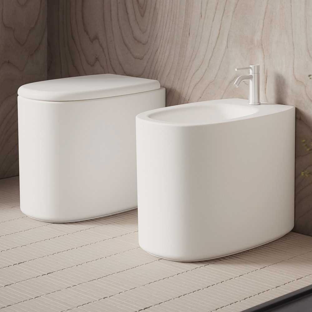 Një tualet që kombinon linjat e buta dhe të pastra me elegancën e përjetshme, perfekte për ata që duan një banjo moderne dhe funksionale pa sakrifikuar rafinimin.