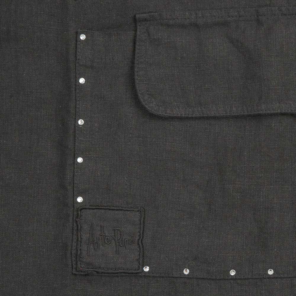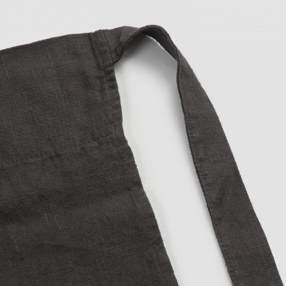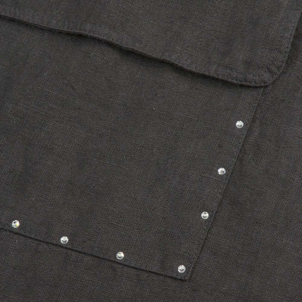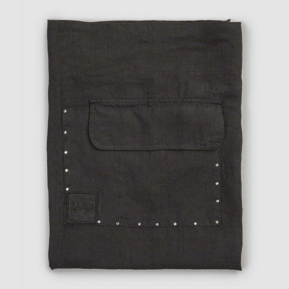 Përparëse prej kuzhine prej liri të zezë me xhep dhe kristale, model i ulët prodhuar në Itali.