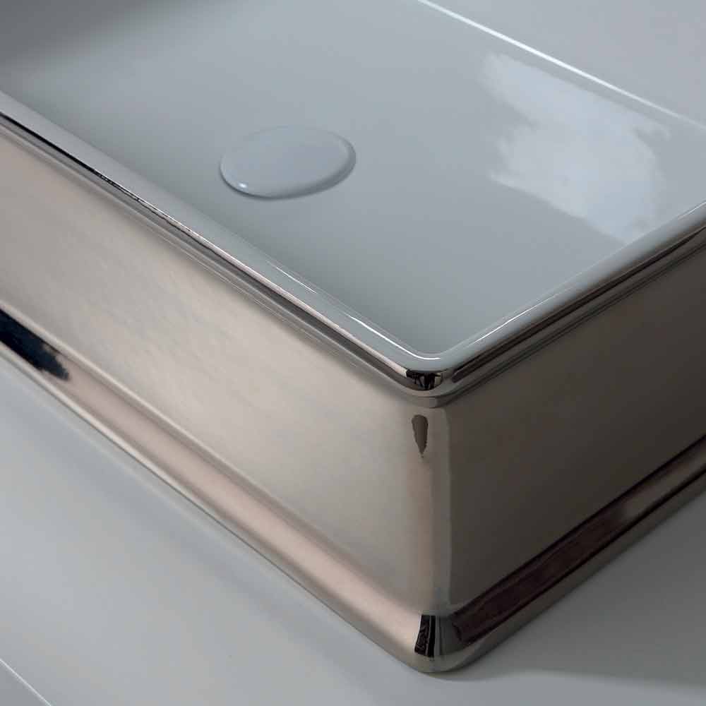 Lavaman tavoline qeramike me dizajn modern Debora të prodhuar në Itali Debora është lavamani i tavolinës i prodhuar në qeramikë të bardhë dhe platini që mishëron përsosjen dhe elegancën pa lënë pas dore funksionalitetin. I dizajnuar dhe punuar me dorë në Itali me forma sinusiale dhe të trazuara në krahasim me lavamanët e tjerë, ky detaj e bën atë të përsosur për të dekoruar banjën tuaj me shije.