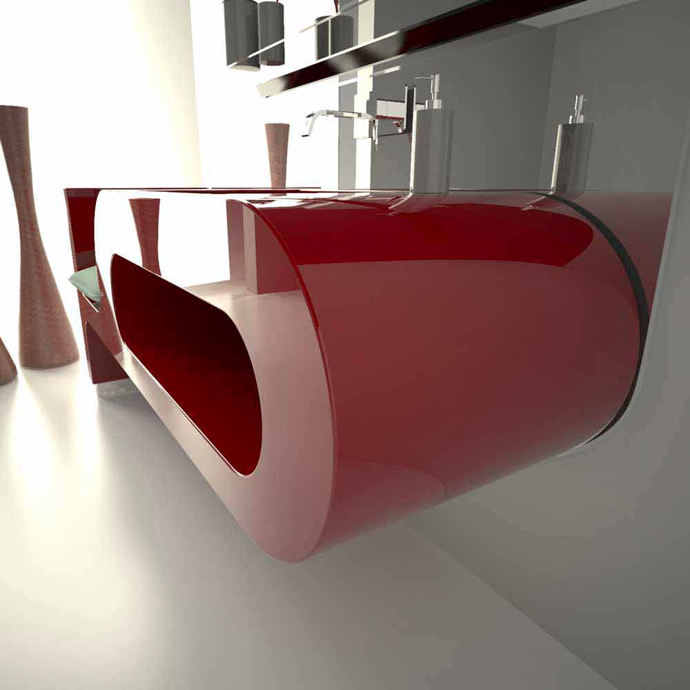 Lavaman i projektuar. Materiali: Sipërfaqja e ngurtë; Komoditeti dhe ergonomia janë protagonistët e kësaj banjoje të dizajnuar duke marrë parasysh kërkesat e ditëve të sotme, por edhe dizajnin dhe format e rrumbullakosura. Gjithçka është afër dhe e lehtë për t'u përdorur, e përshtatshme për të thjeshtuar dhe lehtësuar gjestet e përditshme. Fund me llak me shkëlqim. E disponueshme ne ngjyra te ndryshme.