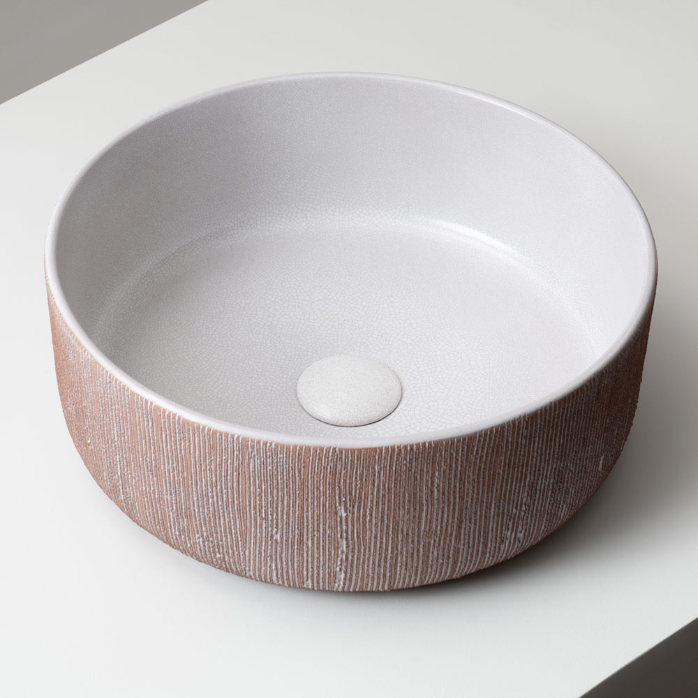 Ideal për banjo me karakter bashkëkohor, natyror ose wabi-sabi, ky lavaman bëhet një element i vërtetë dekorativ, i aftë të transformojë sipërfaqen e lavamanit në një pikë qendrore të dhomës.