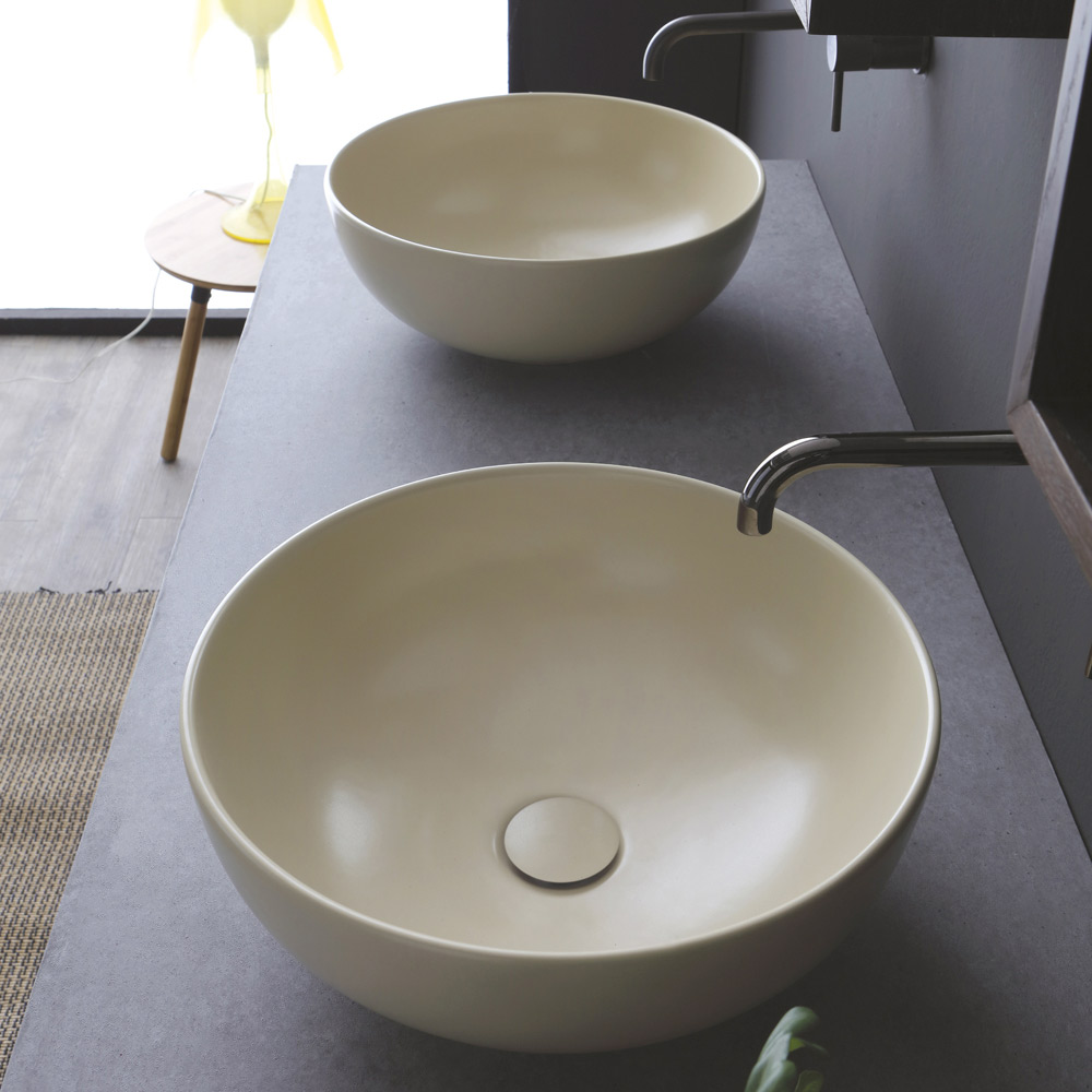 Lavaman banaku i rrumbullakët i bërë nga qeramika me ngjyrë me një përfundim mat përmes 100% mjeshtëri e prodhuar në Itali . Thjeshtësia dhe shkathtësia bashkohen për t'i dhënë jetë kësaj mobilie të mrekullueshme me një stil minimal dhe të rafinuar të krijuar për të kompletuar çdo zonë moderne të banjës, duke sjellë me vete një prekje personaliteti dhe elegance .