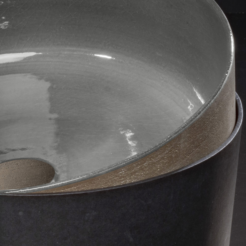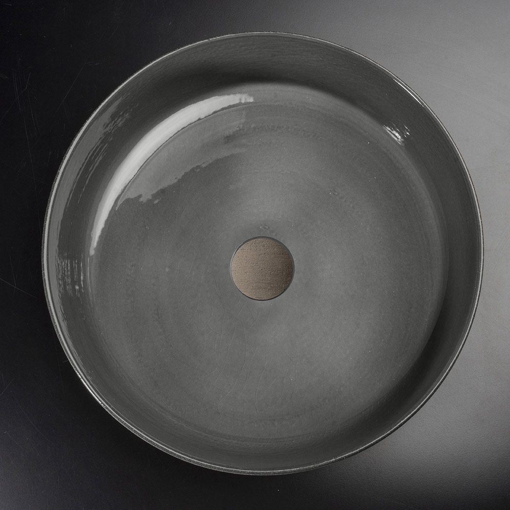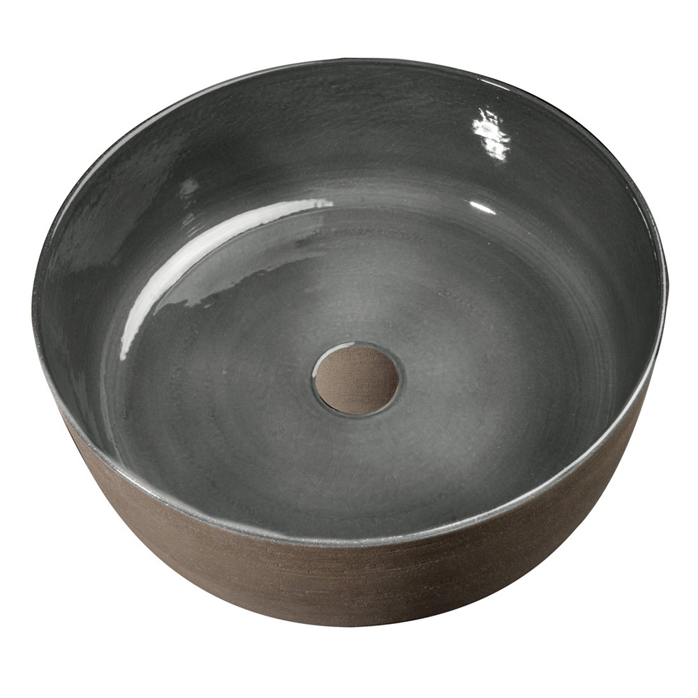 Lavaman banak me formë të rrumbullakët i prodhuar në Itali në argjilë zjarrduruese , i kthyer me dorë me gatim të tretë me zjarr. Estetika e saj karakterizohet nga kombinimi perfekt i pjesës së jashtme natyrale të depiluar dhe të hidroizoluar me një stil më rustik dhe dekorimin e brendshëm gri të shkëlqyeshëm dhe të vitrifikuar, një ngjyrë që shpreh elegancën në një mënyrë të matur dhe të rezervuar. Çdo element i lavamanit është punuar me dorë për t'i dhënë jetë një zgjidhjeje ekskluzive mobilimi, me vlerë të lartë dhe me cilësi të pashoqe.