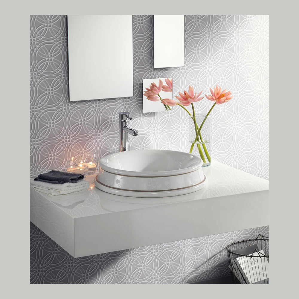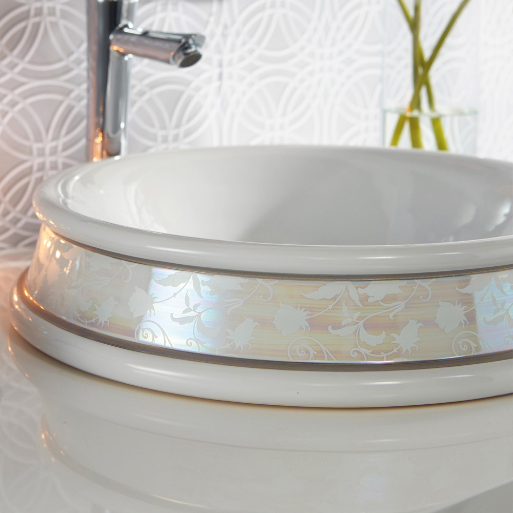 Lavaman banjo gjysmë i futur prej balte zjarri me dantella të qëndisura ton sur ton , tërësisht Prodhuar në Itali. Forma dhe përfundimi i këtij produkti janë krijuar për të dekoruar banjën me mobilje elegante dhe mbresëlënëse, të veçanta. Cilësia dhe funksionaliteti tipik i një produkti Made in Italy nuk janë anashkaluar duke zgjedhur materialet më të mira dhe duke ia besuar prodhimin mjeshtrit të ekspertëve italianë.