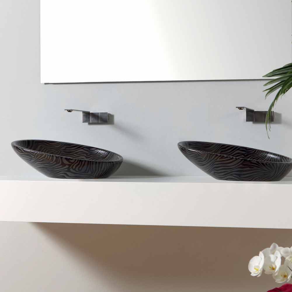 Lavaman argjendi me shkëlqim qeramike, tavolinë moderne, e bërë në Itali Me shkëlqim është lavamani i tavolinës i bërë në Itali nga mjeshtrit mjeshtër në qeramikë me një përfundim argjendi zebër. E përkryer për të dekoruar banjën tuaj dhe për t'iu përshtatur çdo stili falë formës së saj të butë dhe të zgjatur.
