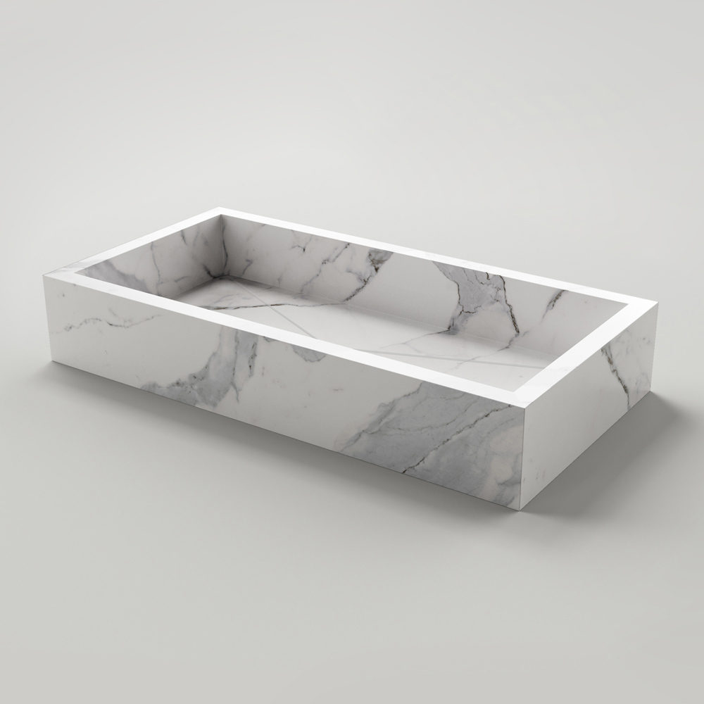 Lavaman tavani drejtkëndëshe prej guri prej porcelani Made in Italy.