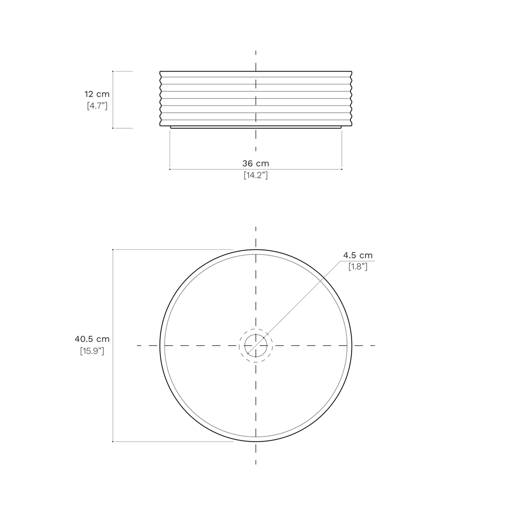 Dimensionet:- diametri 40.5 cm