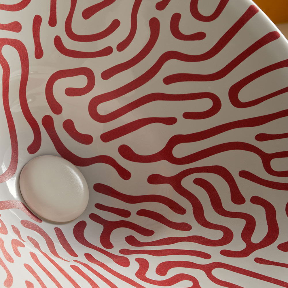 - dekorim i brendshëm i relievit koral mbi smalt të bardhë, smalt i jashtëm i bardhë