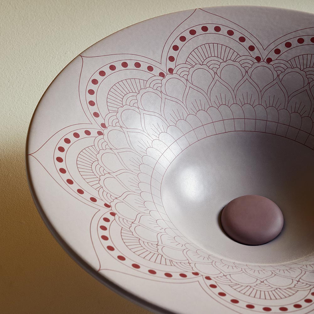 - dekorim i brendshëm reliev i mandalës në smalt gri mat, smalt i jashtëm i bardhë