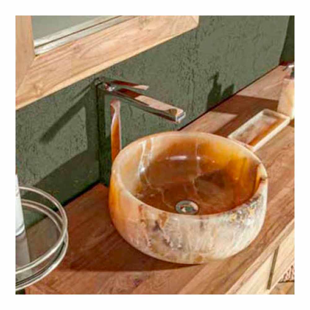 Oniksi i pastër është një gur i rrallë dhe i çmuar. Forma sensuale dhe e përkulur që e transformon vetëm prekjen e saj në një përvojë unike shqisore. Unike dhe e papërsëritshme, çdo pjesë është e ndryshme. Lavaman tavani prej guri oniksi të pastër të grirë dhe të lëmuar. Ai i fotografuar është një shembull që nuk mund të përsëritet në seri.