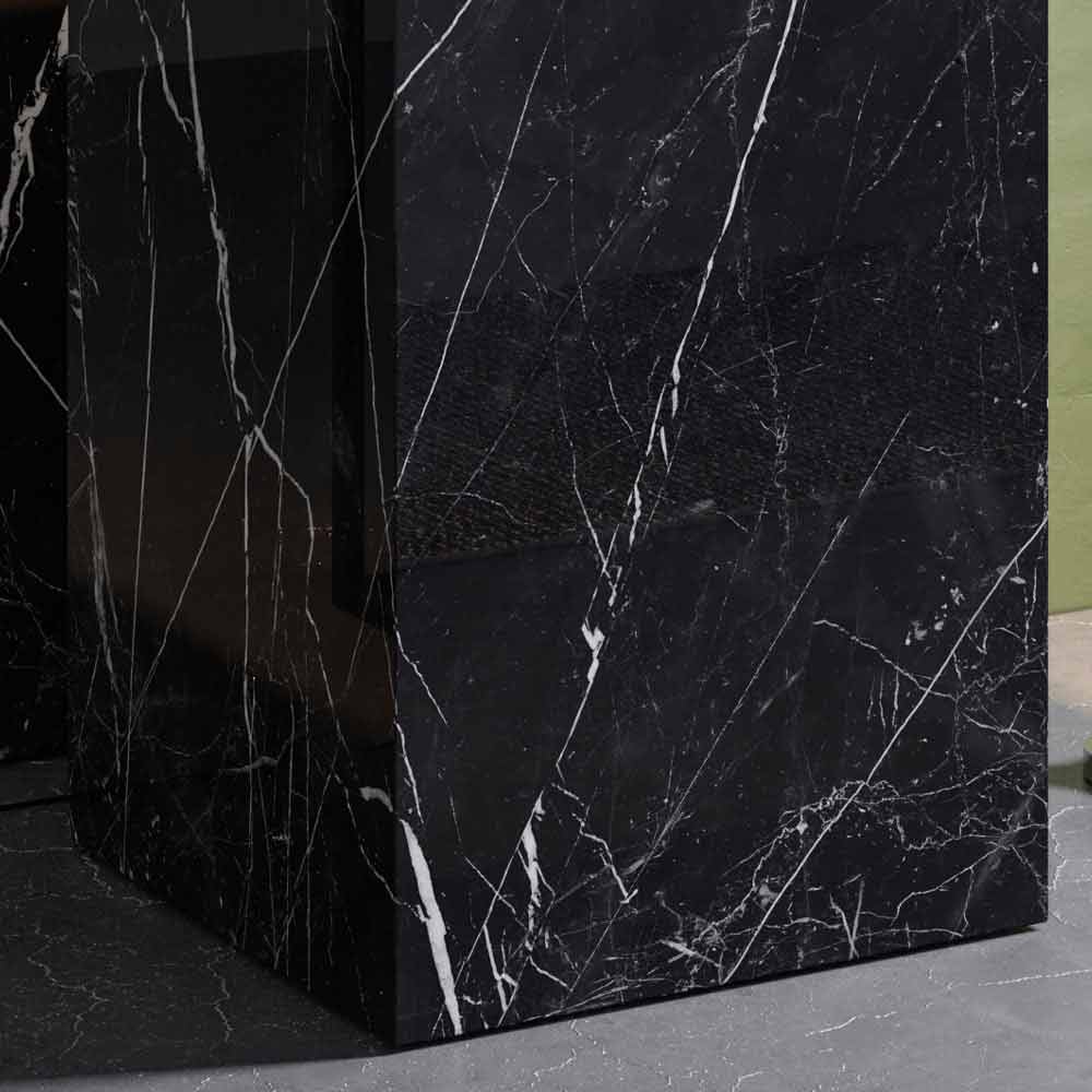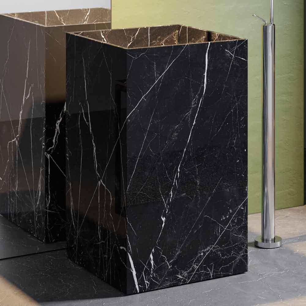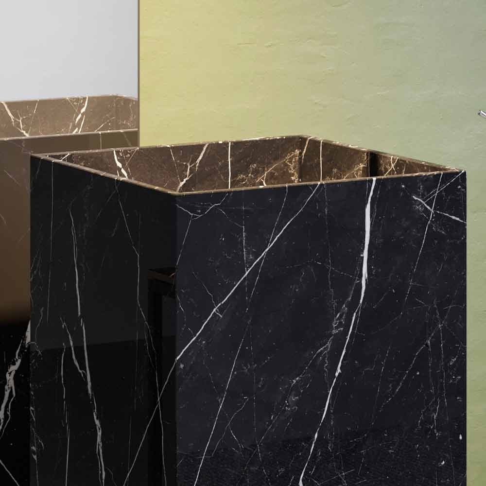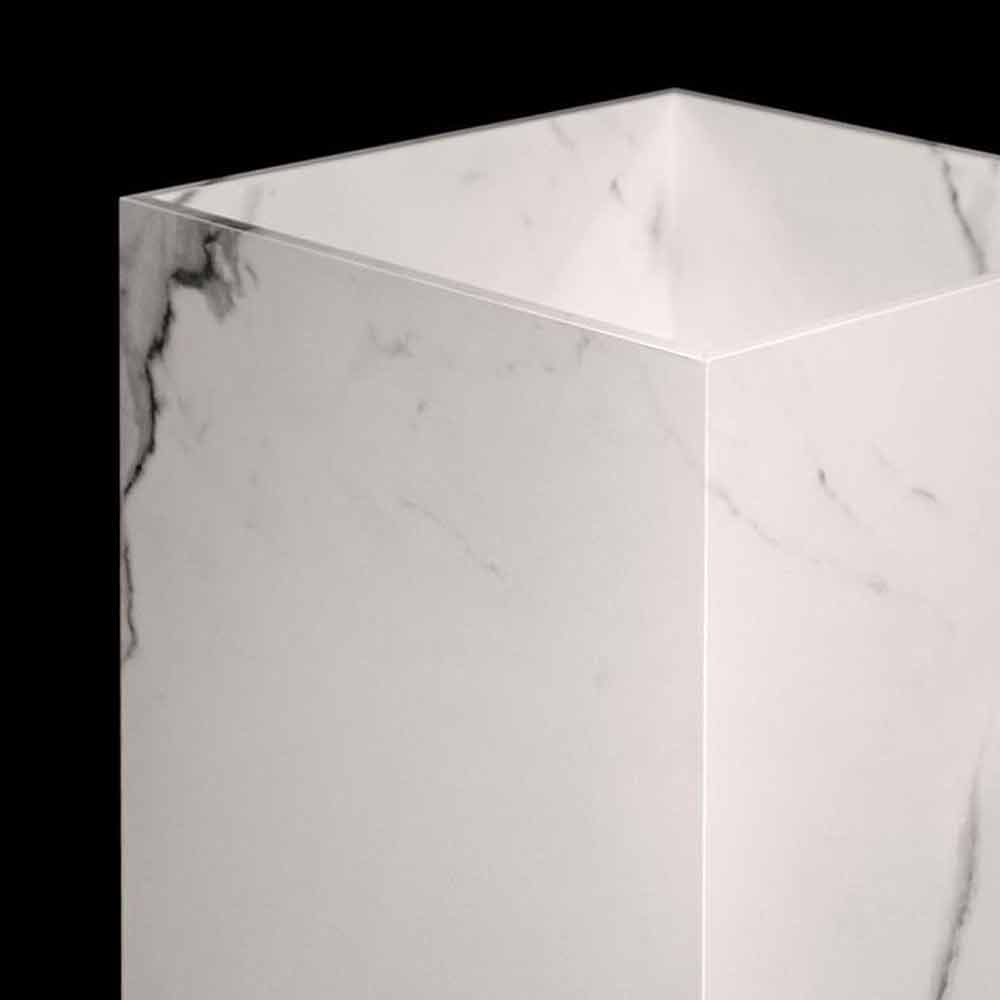 Dizajni monumental dhe i përjetshëm i këtij lavamani piedestal i bërë tërësisht prej gresi prej porcelani është në gjendje të bëhet protagonist i zonës së banjës. Forma paralelopiped gjeometrike dhe imponuese krijon atmosferë të sofistikuar dhe luksoze. Shtë i pajisur me një kullues universal me kapak qeramik lart & poshtë / kullues falas prej 7.1 cm.