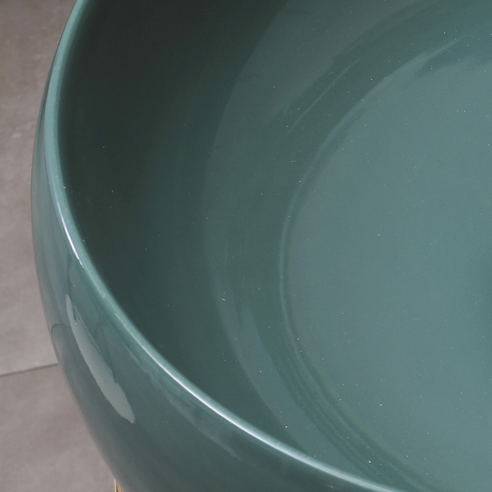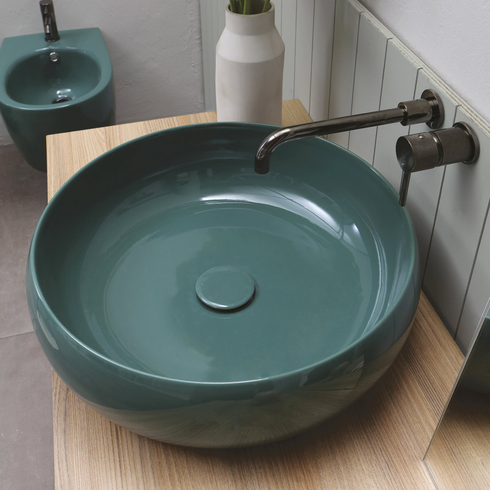 Lavaman i rrumbullakët i tavolinës i bërë në Itali përmes një mjeshtërie në qeramikë me shkëlqim. Një mobilje origjinale dhe elegante që paraqet një dizajn të shënuar nga linja të buta dhe harmonike të cilat i japin produktit të gjithë personalitetin e tij bashkëkohor dhe shijen e tij moderne. Ideal për banjo me orendi të rafinuara dhe thelbësore, ky lavaman sjell me vete një ndikim të fortë skenografik falë ngjyrave të mrekullueshme dhe të pazakonta të propozuara që transformojnë estetikën e tij të thjeshtë në një kryevepër të vërtetë.
