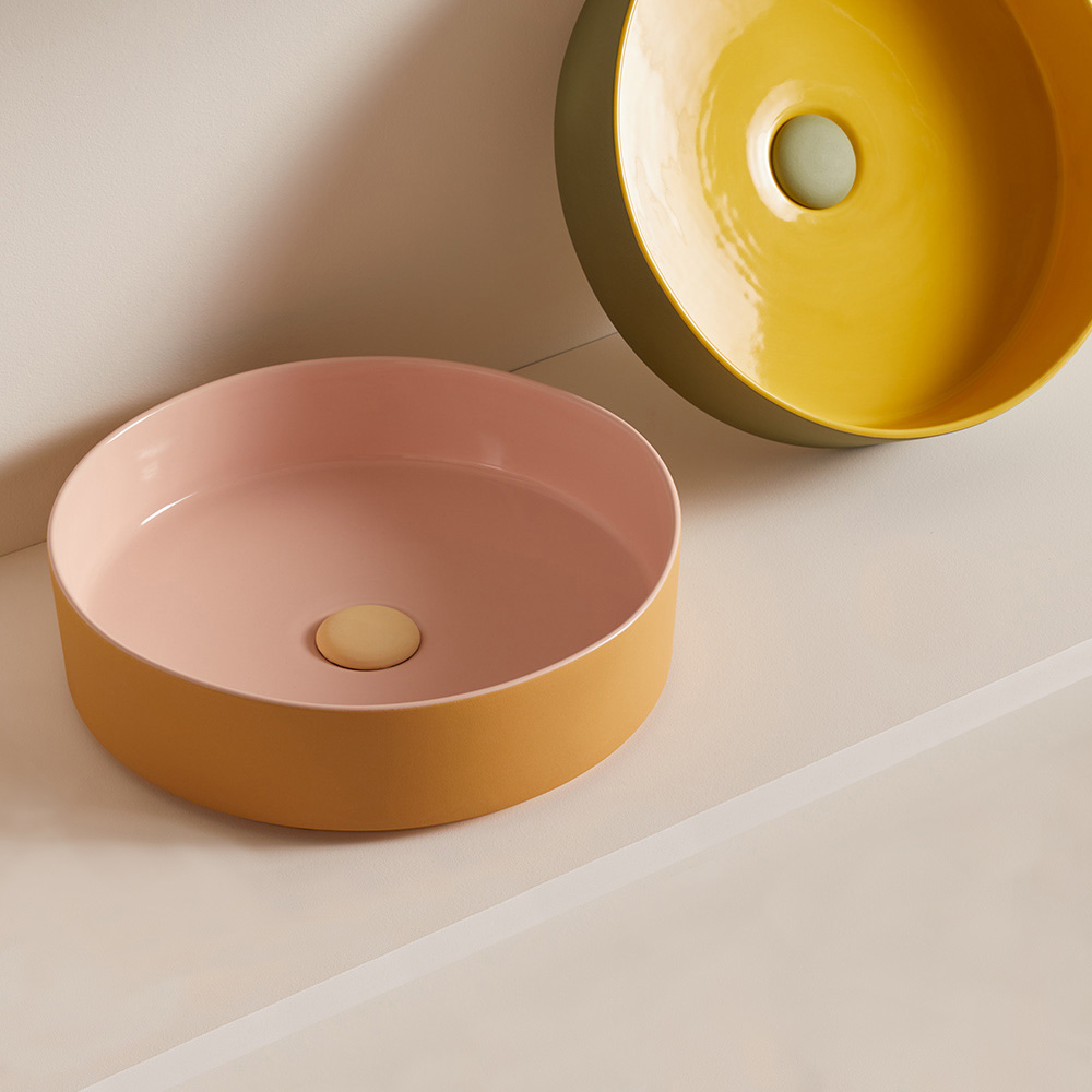 Prodhuar në Itali. Ky lavaman merr frymëzim nga ngjyrat e ëmbëlsirave, duke luajtur me