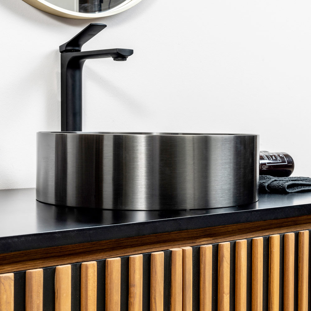 Lavamani i rrumbullakët i banakut në çelik inox 3 mm SUS 304 është një xhevahir i dizajnit dhe funksionalitetit. I prodhuar nga një fletë metalike, ofron një estetikë të pastër dhe moderne. Trajtimi i përfundimit të veshjes PVD+Nano , i kombinuar me furçë të përpiktë, i jep objektit një pamje tërheqëse dhe pothuajse enigmatike, duke rritur shkëlqimin dhe rezistencën ndaj njollave dhe gërvishtjeve. Dizajni karakterizohet nga forma të balancuara dhe proporcione ideale, të disponueshme në tre përfundime që përshtaten në mënyrë elegante me çdo ambient. Për më tepër, detajet e rafinuara si mbulesa e koordinuar e kullimit të përfshirë dhe mungesa totale e saldimit të dukshëm e ngrenë këtë lavaman në një kryevepër të vërtetë të mjeshtërisë dhe dizajnit, duke e bërë atë një pjesë të spikatur për banjot me një ndjenjë luksoze dhe bashkëkohore .