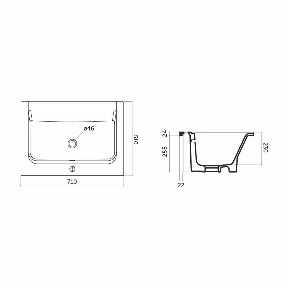 Prodhimi është bërë plotësisht në Itali , duke ndjekur një standard të rreptë cilësie me një hulumtim të kujdesshëm mbi materialin, siç është porcelani i qelqtë . Ky lloj i veçantë i qeramikës me xham të gatuar në 1200 ° posedon karakteristika që e bëjnë atë veçanërisht të indikuar për prodhimin e lavamanëve. Isshtë rezistent ndaj acidit, nxehtësisë, gungave dhe gërvishtjeve dhe nuk zbehet jashtë orarit. Alsoshtë gjithashtu higjenik dhe i lehtë për tu pastruar . Lavamani vjen me vrimë të vetme qendrore.
