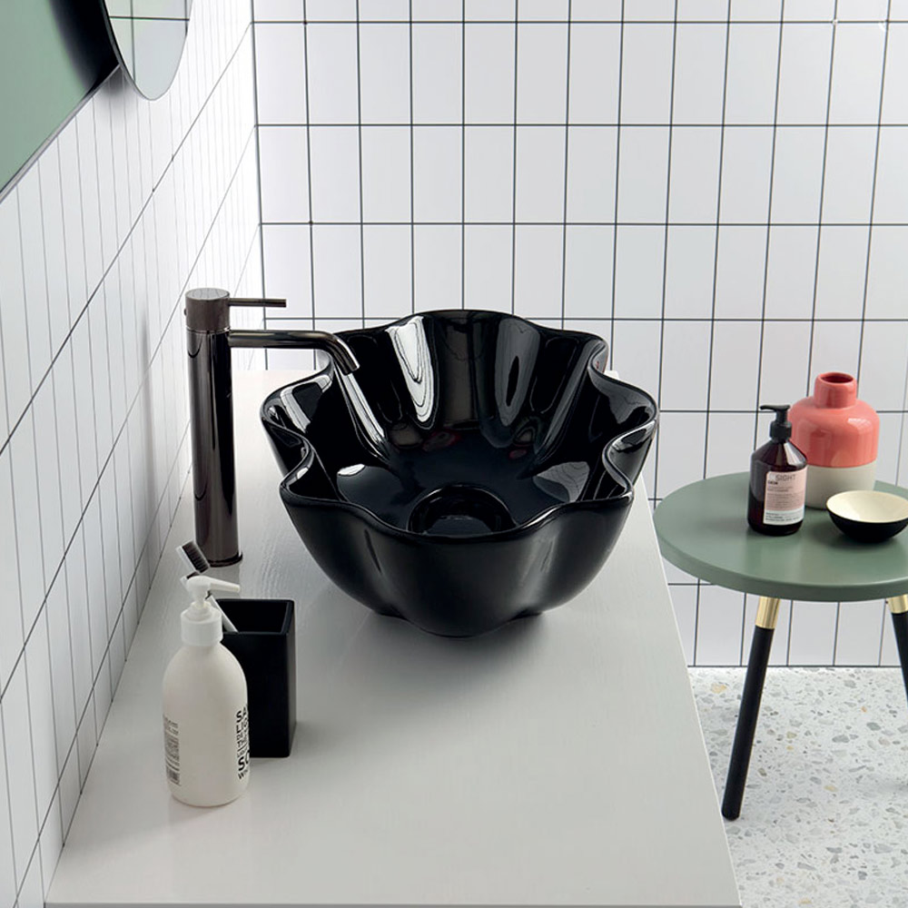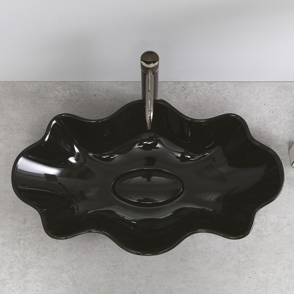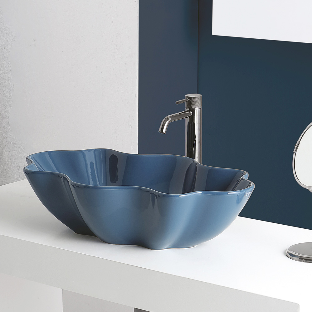 Lavaman në formë tavoline për zonën e banjës në qeramikë me ngjyra me një përfundim me shkëlqim të bërë në Itali përmes një prodhimi artizanal . Një dizajn origjinal dhe joshës që vjen nga dëshira për të propozuar zgjidhje arredimi larg produkteve të serisë klasike. Rezultati është një lavaman me një estetikë ekskluzive që tërheq vëmendjen tek vetja falë personalitetit të tij imponues modern dhe formës së veçantë që të kujton një guaskë.