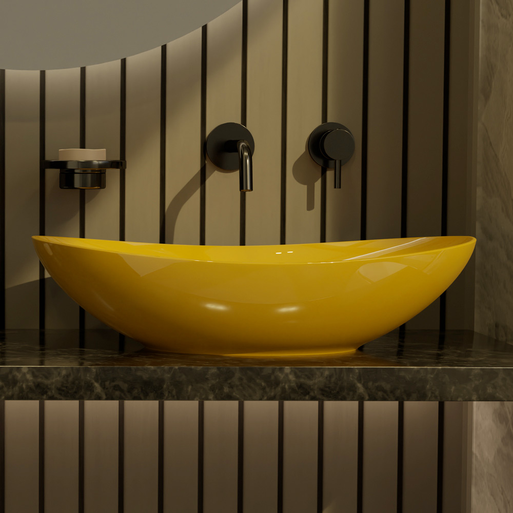 Lavaman me tavolinë ovale në qeramikë me shkëlqim ose ngjyrë mat të prodhuar në Itali përmes mjeshtërisë . Linjat sinusiale dhe harmonike i japin jetë një dizajni modern dhe avangard të krijuar për ata që duan një stil të thjeshtë dhe të gjithanshëm pa hequr dorë nga një prekje origjinale në zonën e tyre të banjës.