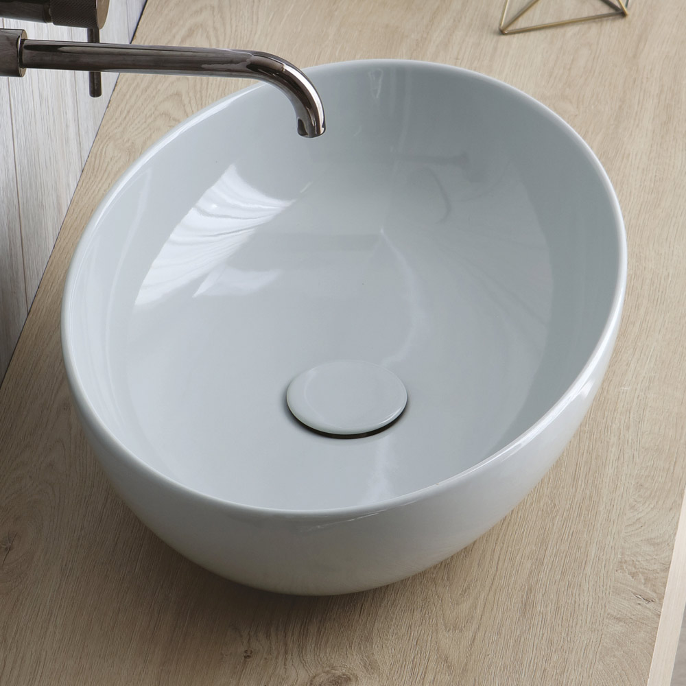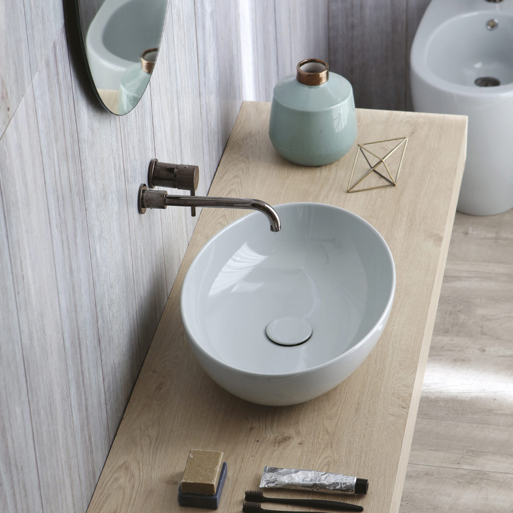 Lavaman me tavolinë ovale në qeramikë me ngjyrë dhe përfundim me shkëlqim të bërë me mjeshtëri 100% Made in Italy . Një produkt me një shije moderne dhe estetikë të gjithanshme i projektuar dhe krijuar për të mobiluar zonat e banjës me një stil minimal në të cilin e kompleton pamjen me një prekje të personalitetit dhe karakterit . Dizajni i tij i thjeshtë dhe linjat harmonike përshtaten në mënyrë të përkryer me çdo situatë stilistike, duke pasuruar mobiljet përreth me një prekje krijuese dhe duke u bërë kështu protagonisti i vërtetë i dhomës.