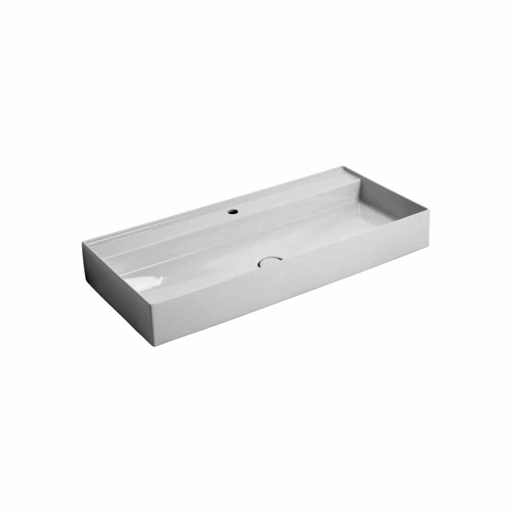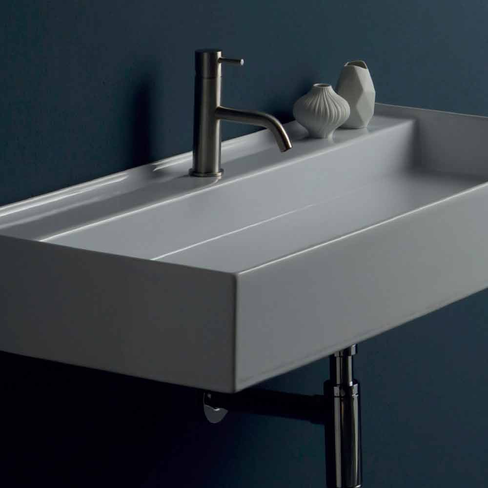 Lavaman qeramike me dizajn modern Sun 100x45 cm prodhim Itali Qeramika në koleksionin Sun arrin trashësi shumë të holla për të krijuar forma të pastra dhe elegante. Pajisjet sanitare të linjës Sun paraqesin një zgjidhje teknike inovative për të optimizuar pastrimin dhe për të siguruar higjienë më të madhe dhe lehtësi në përdorim. NB:Përfshihet kullimi qeramik me shkarkim falas, i përjashtuar nga rubineti. Si opsion është e mundur të keni sifonin e rrumbullakët prej bronzi me një përfundim kromi.