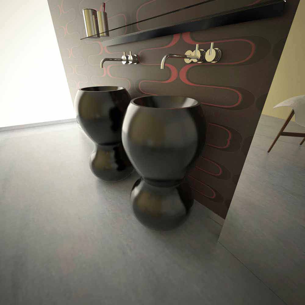 Lavaman i projektuar. Materiali: Sipërfaqja e ngurtë; Forma të rrumbullakosura, pamje monolit, kompakte, rezistente dhe e këndshme në prekje. Ky lavaman piedestal është shumë origjinal. Finim i jashtëm mat me llak, përfundim i brendshëm me llak me shkëlqim. E disponueshme ne ngjyra te ndryshme.
