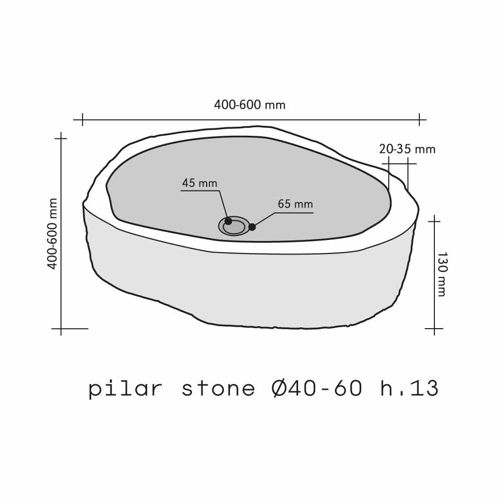 Ky produkt është bërë nga një gur natyral i ngjashëm me bazaltin. Dimensionet: Diametri 13 cm x H 40/60