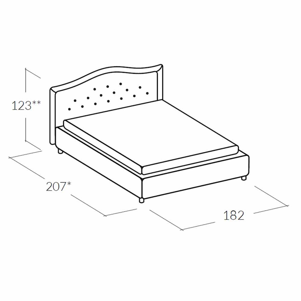 Krevati dopio Agly me kontejner është i disponueshëm në versionin për një bazë me rrasa 160x190 cm ose për një bazë me rrasa 160x200 cm : - 160x190 cm; dimensionet e përgjithshme L182 x P 211 x H 128 cm - 160x200 cm; dimensionet e përgjithshme L182 x P 221 x H 128 cm