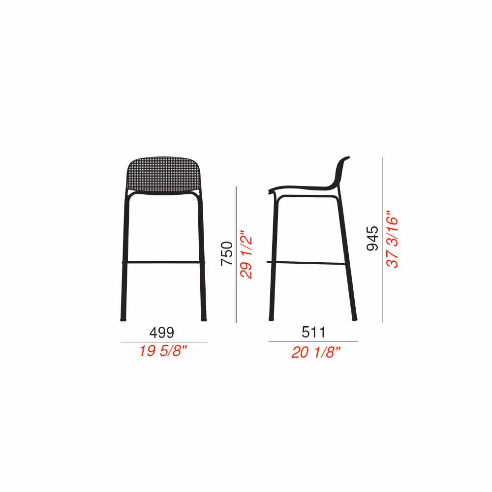 Stool i lëmuar në natyrë metalike pikturuar me mbrapa, Made in Italy, 2 copë.