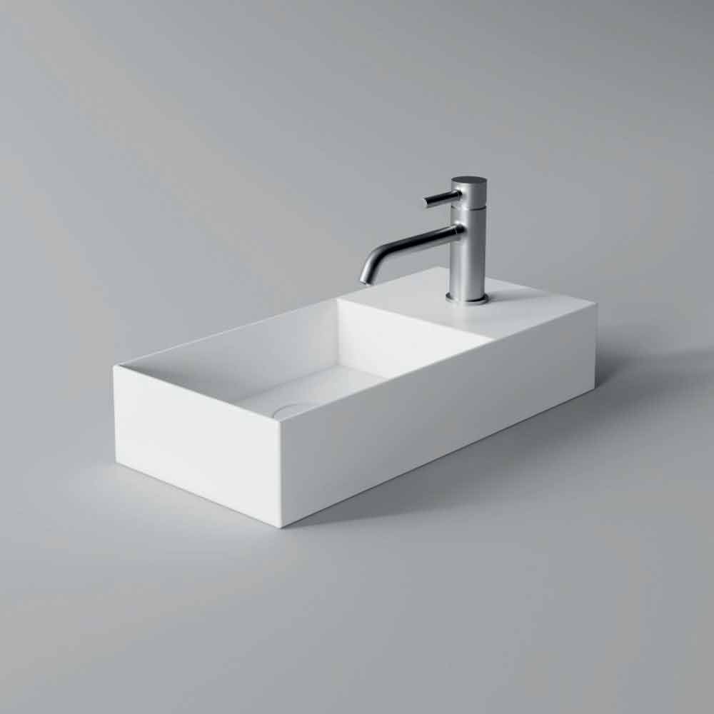 Lavaman drejtkëndor me dizajn modern në instalim qeramike, banak ose me varëse, prodhim Italie.