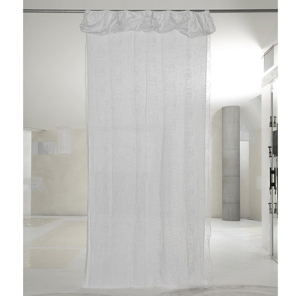 Perde e bardhë në garzë liri dhe organza me trëndafila të qëndisur, dizajn elegant i prodhuar në Itali.