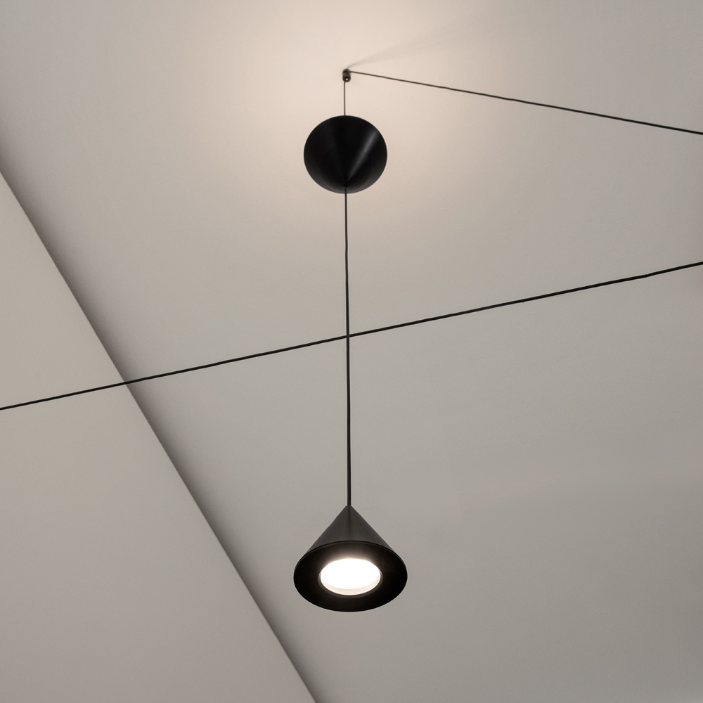Llamba është bërë me një strukturë alumini të zezë opake për një dizajn tërësisht italian , i cili, përmes eksperimenteve jokonvencionale dhe kërkimit të vazhdueshëm midis traditës dhe modernitetit , është në gjendje të mahnisë, të guxojë dhe të emocionojë, duke ju lejuar të shprehni emocionet tuaja përmes një përdorimi origjinal dhe personal dekorativ. të dritës.