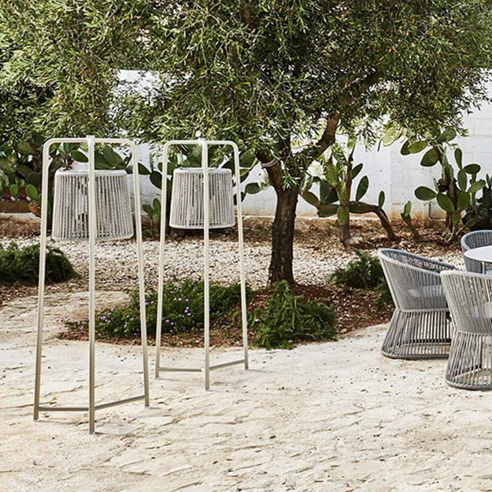 Llamba kopshti tërësisht e prodhuar në Itali me strukturë alumini të veshur me pluhur në fund gri mëndafshi dhe një thurje të punuar me dorë në fibër sintetike ngjyrë perlekompletuar me drite LED . Përfundimet e mrekullueshme të propozuara janë ideale për të krijuar një atmosferë sugjestive dhe për të nxjerrë në pah zona të veçanta të shtëpisë, duke revolucionarizuar pamjen e ambientit përreth dhe duke pasuruar estetikën e tij.