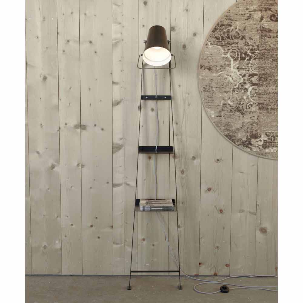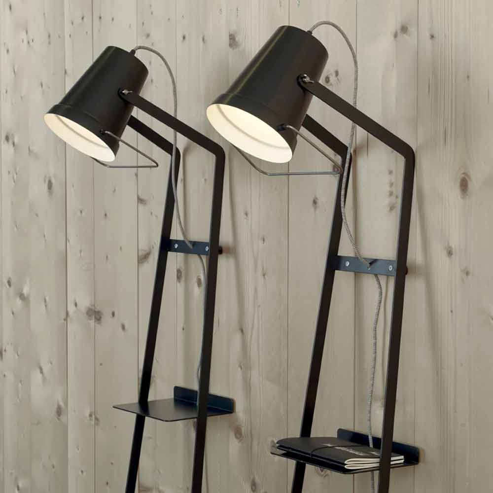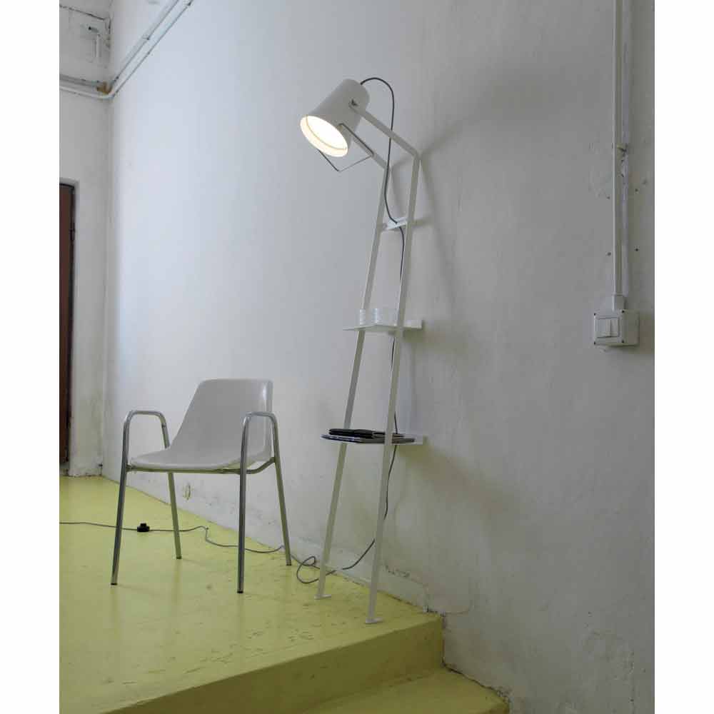 Kjo llambë dyshemeje origjinale dhe unike vepron si një butler me siluetën e saj të murit që ju lejon të drejtoni dritën në dhomë direkt ose indirekt dhe raftet e saj praktike, për një dizajn funksional në dhomën e ndenjes. Kjo është mënyra se si totemi i ndritshëm përshtatet në kontekste të ndryshme për të sjellë stil dhe efikasitet.