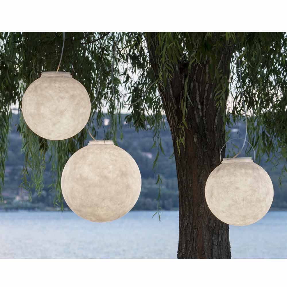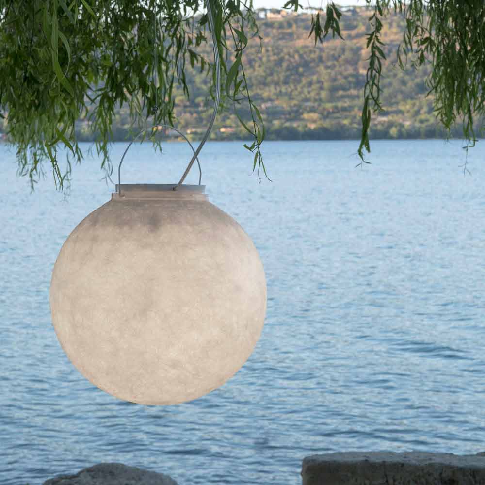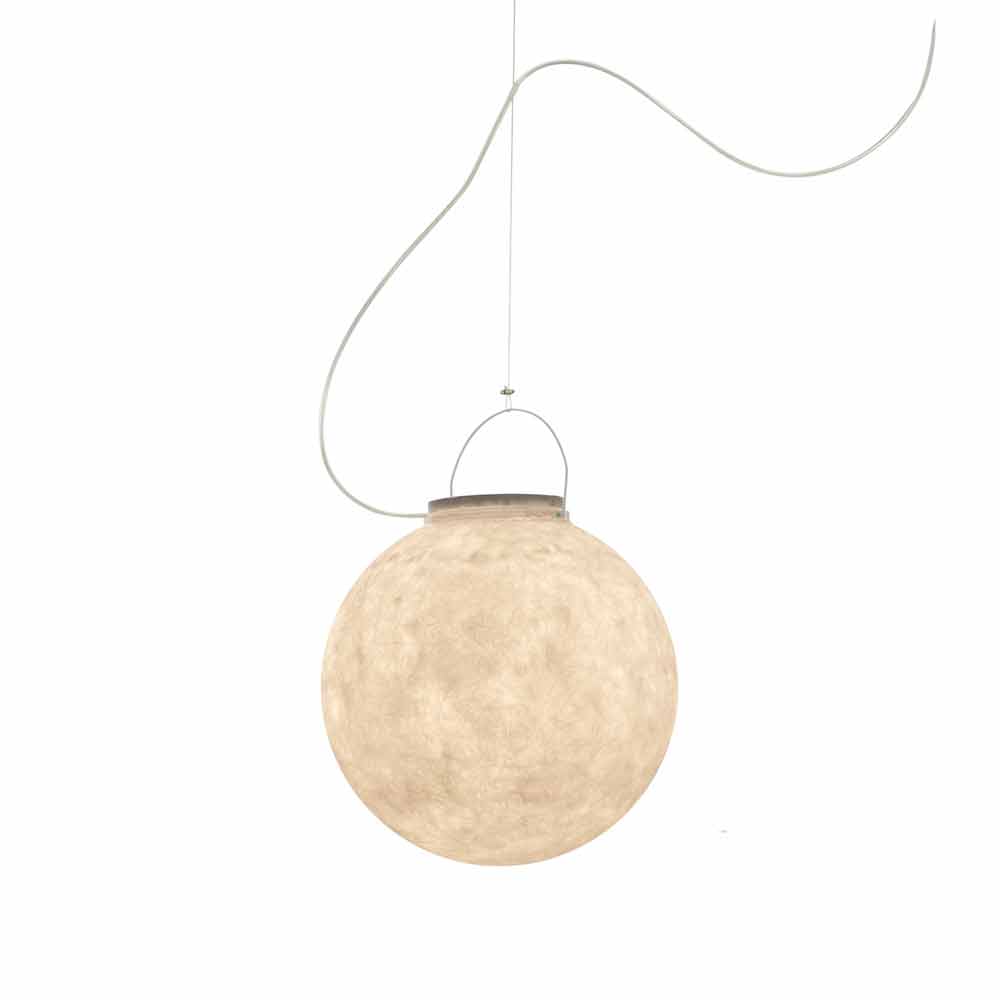 Llamba pezulluese e jashtme në nebulit In-es.artdesign Luna Out Llamba varëse e jashtme Luna Out karakterizohet nga një dizajn elegant dhe i rafinuar. Krijuar nga In-es.artdesign për koleksionin Out me materiale të cilësisë së lartë: laprene, çelik dhe në fund Nebulite i cili është një material i përbërë nga rrëshirë dhe fibra, venat e të cilit i japin llambës një efekt të veçantë "hënor".