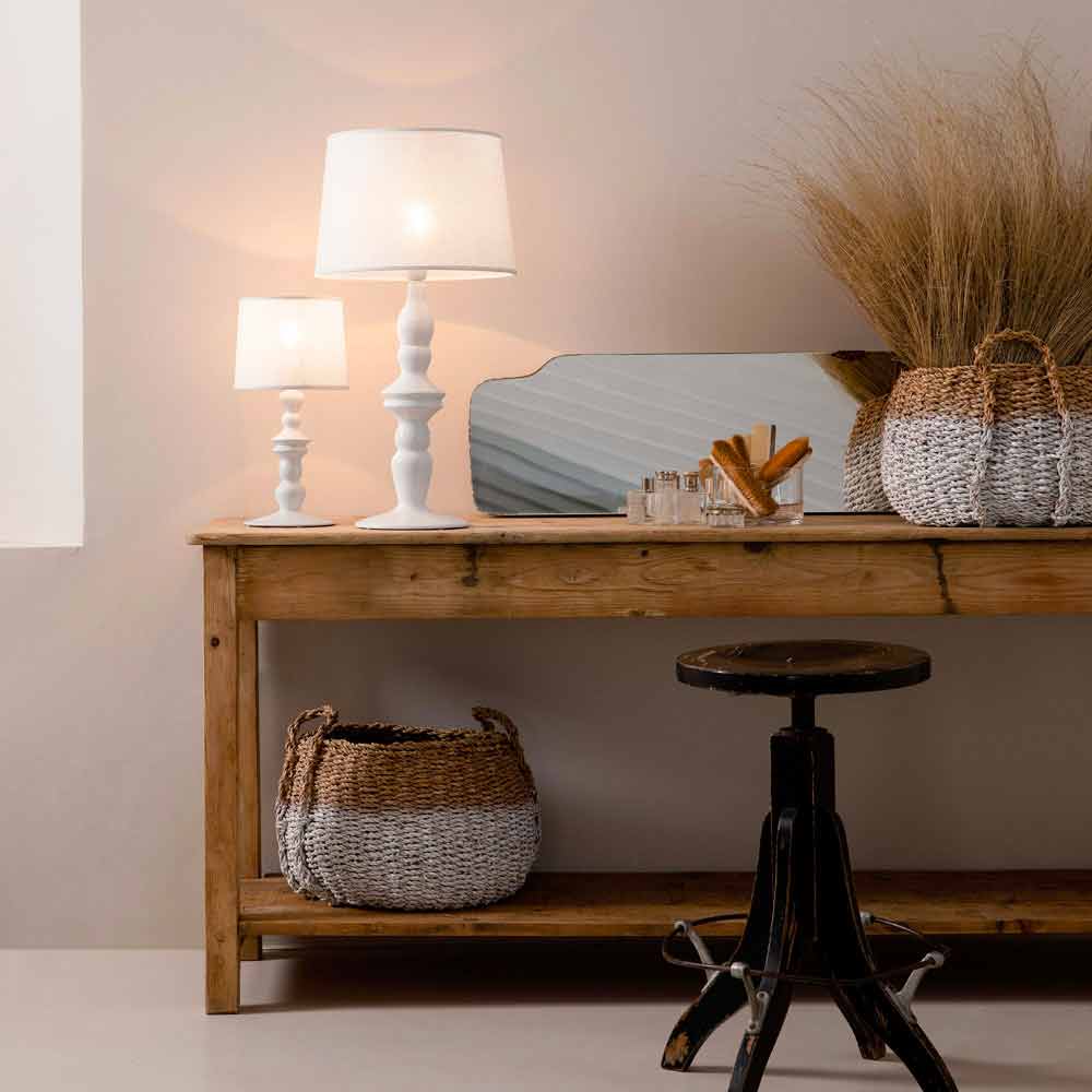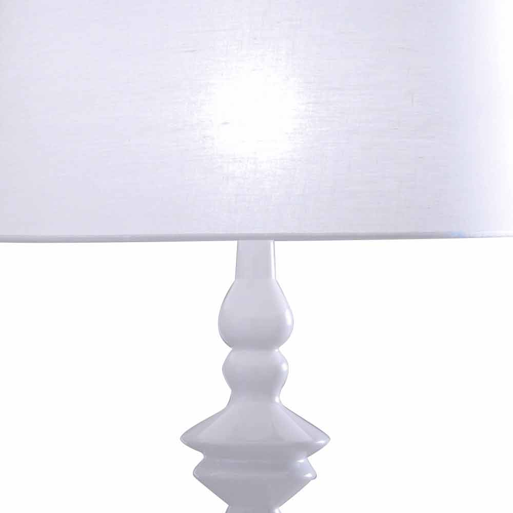 Llamba është bërë nga qeramika me shkëlqim të bardhë si një material që përfaqëson origjinën, lakueshmërinë, krijimin dhe që çon drejtpërdrejt në origjinën e kulturës sonë. Abazhuri në liri të bardhë.