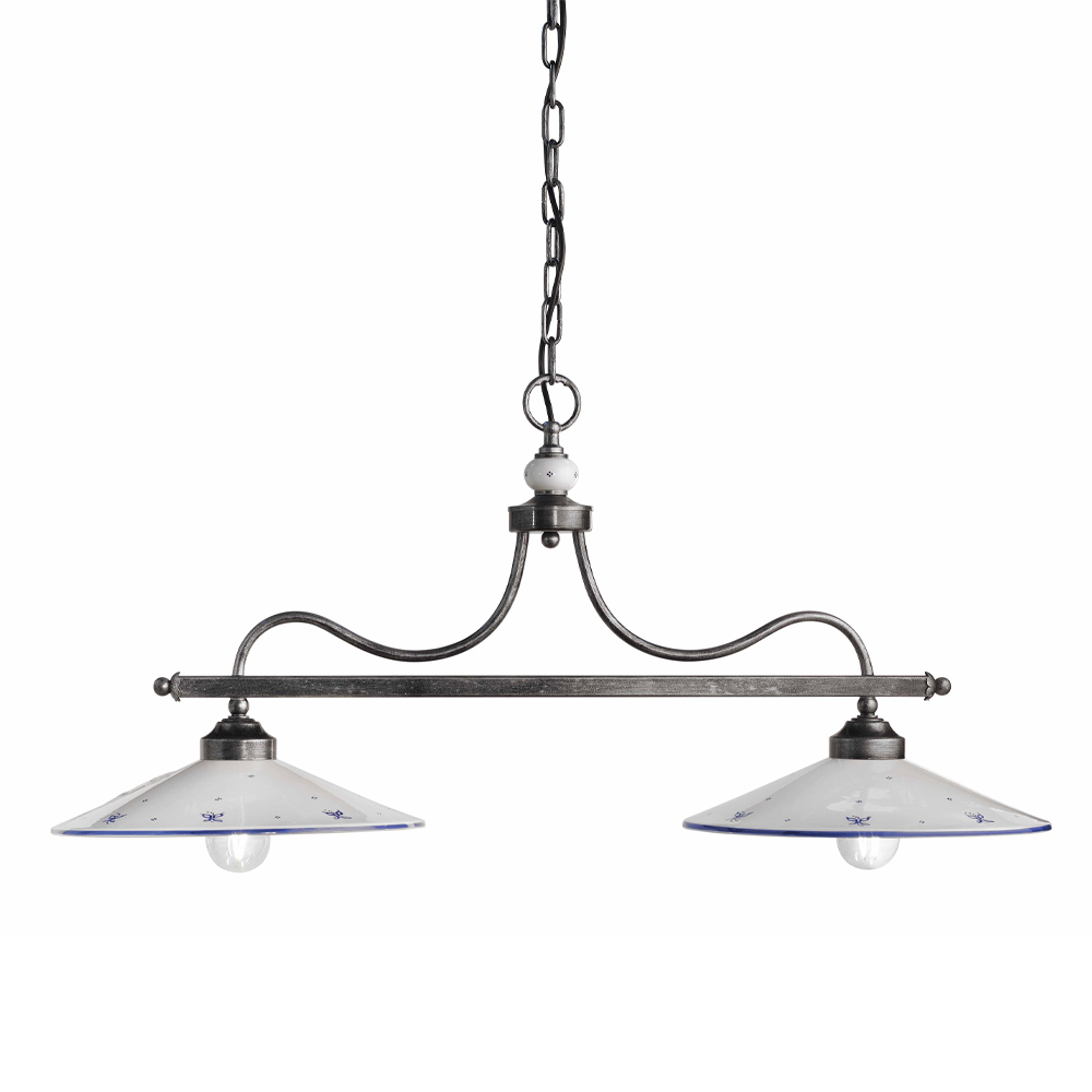 Llamba e varur vintage 2 drita ne hekur dhe qeramike e lyer me dore e prodhuar ne Itali nga Ferroluce.