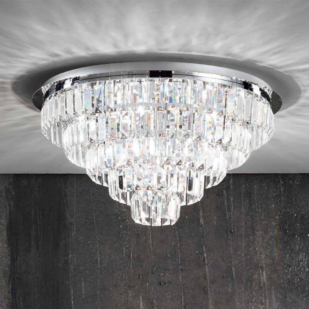 Kjo dritë tavani i dhomës së ndenjes me 9, 12 ose 16 drita është në gjendje të krijojë atmosfera luksoze dhe të rëndësishme falë dizajnit të tij të çmuar dhe të ndritshëm.