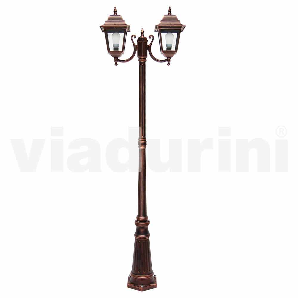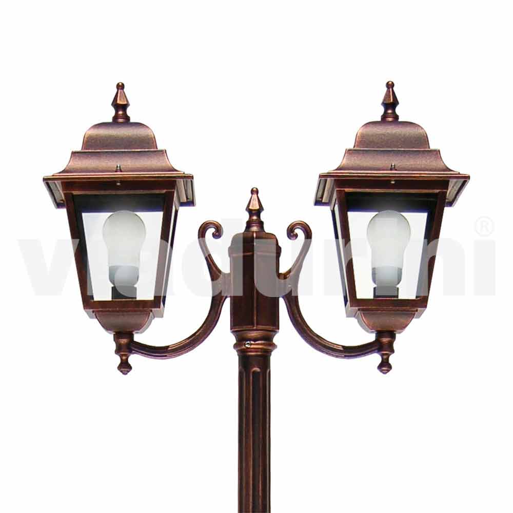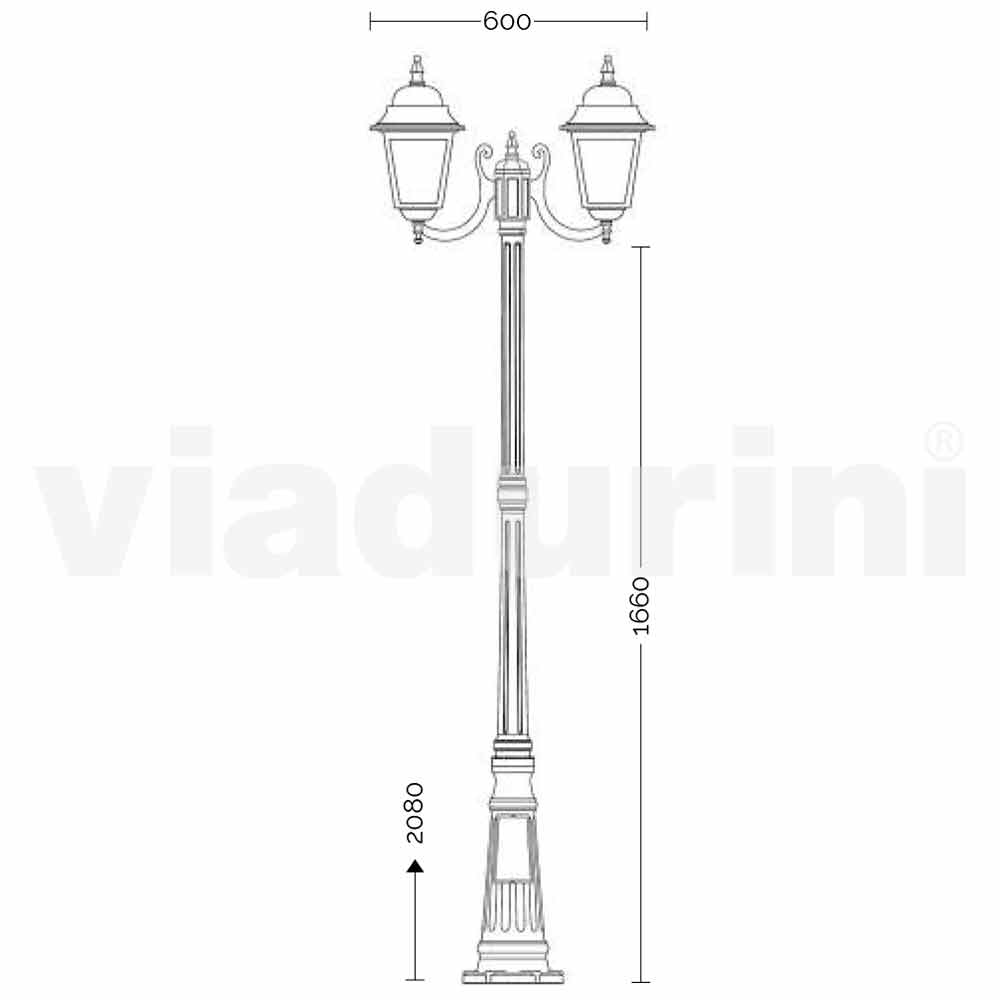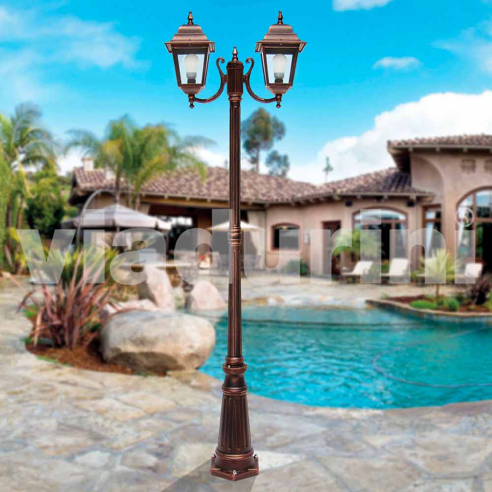 Llambë klasike me dy drita të jashtme e prodhuar në Itali, Aquilina Aquilina është një llambë kopshti me dy drita e punuar me dorë në Itali me material të cilësisë së lartë: strukturë alumini të derdhur dhe shpërndarës xhami të disponueshëm: transparent ose me rërë.
