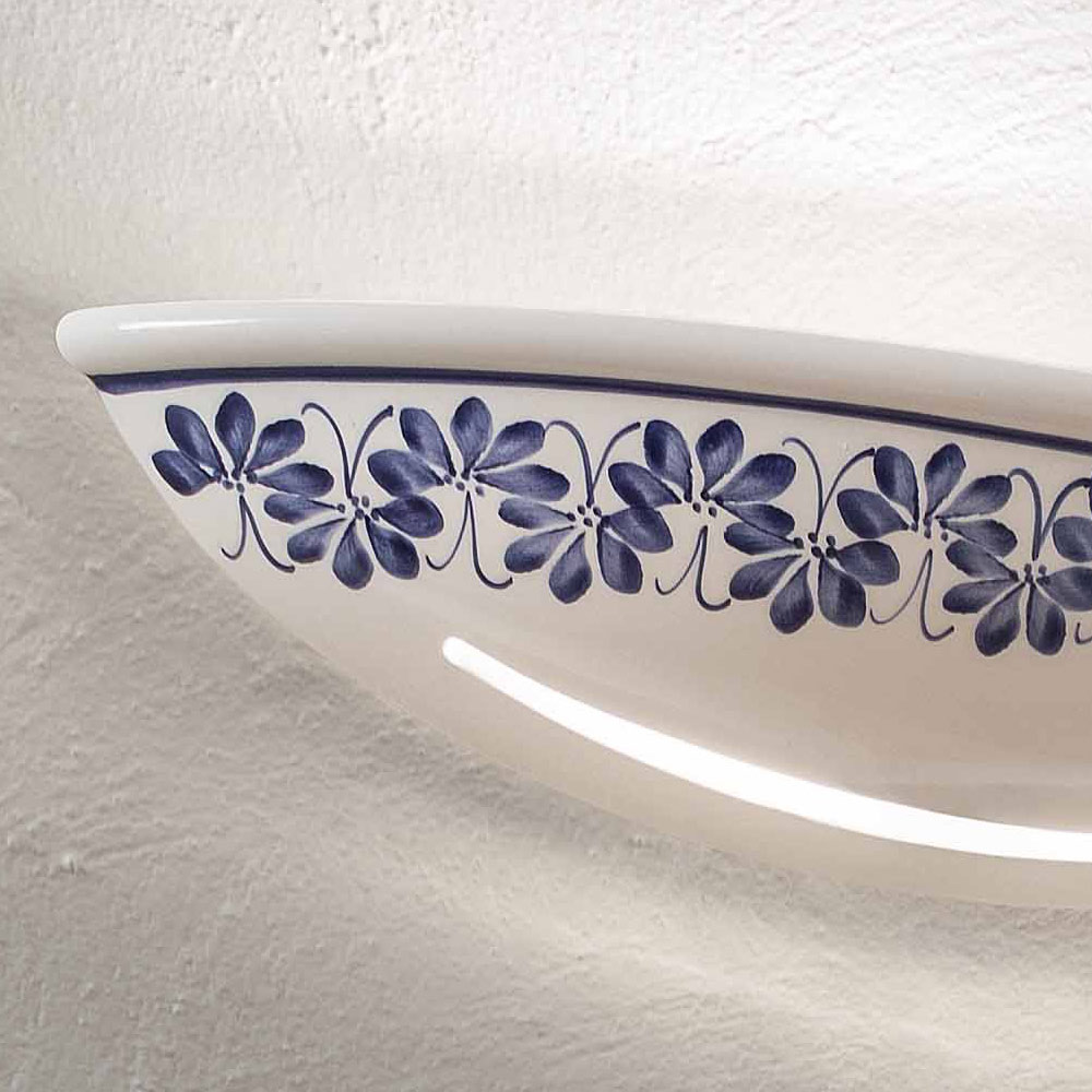 Kjo dritë muri në formë gjysmëhëne është tërësisht prejqeramike me motive dekorimi me fije blu të lyera me dorë ,për të nxjerrë në pah aftësitë dhe aftësitë manuale të artizanëve.