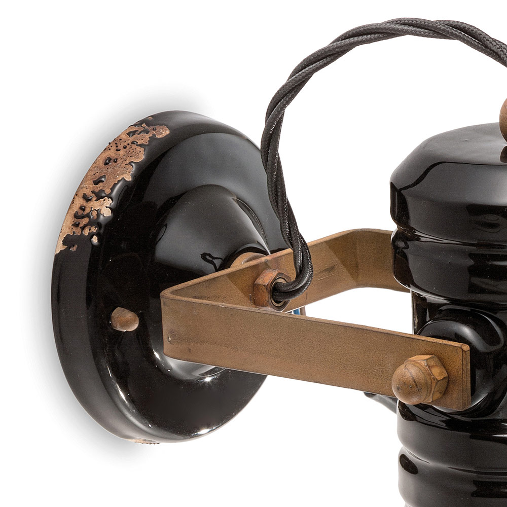 Llambë muri me dizajn industrial të punuar me dorë në qeramikë dhe metal, prodhim në Itali nga Ferroluce.