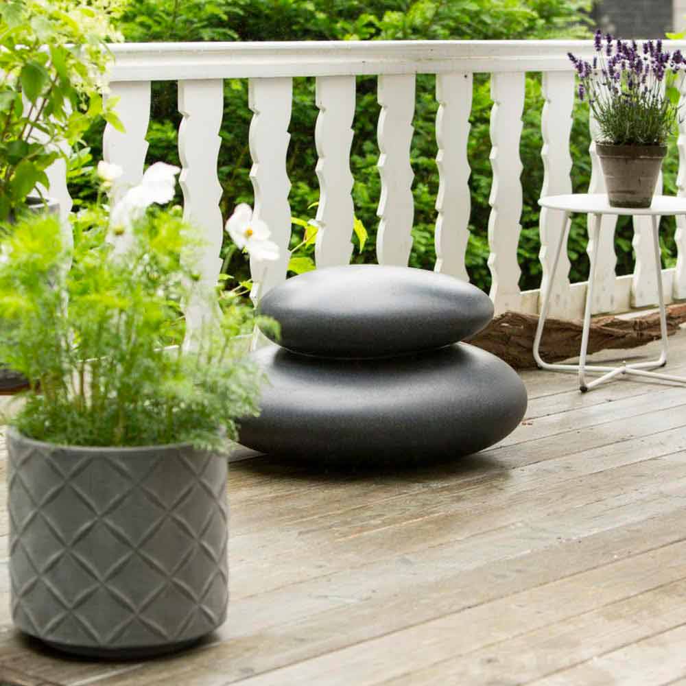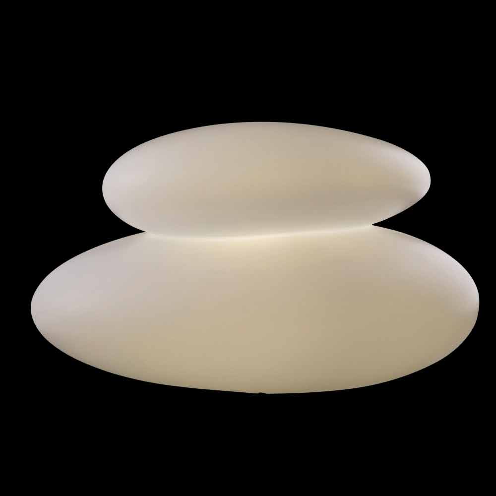 Llambë dyshemeje me një zgjedhje të sulmit të brendshëm ose të jashtëm të një modeli modern në formën e një shkëmbi në polietileni me ngjyra.
