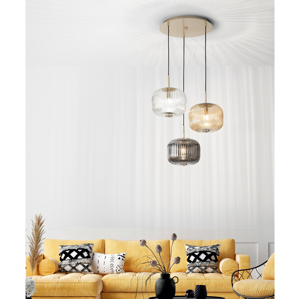 Llambë e varur në metal ari me difuzorë xhami me ngjyrë.