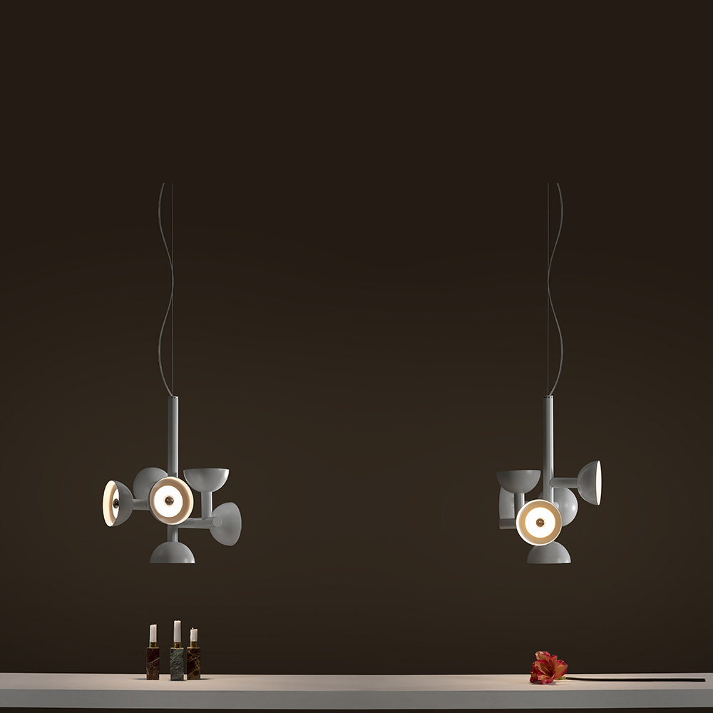Llamba është bërë me një strukturë alumini me dy përfundime për një dizajn tërësisht italian , i cili, përmes eksperimenteve jokonvencionale dhe kërkimit të vazhdueshëm midis traditës dhe modernitetit , është në gjendje të mahnisë, të guxojë dhe të emocionojë, duke ju lejuar të shprehni emocionet tuaja përmes një origjinali dhe personal. përdorimi dekorativ i dritës.
