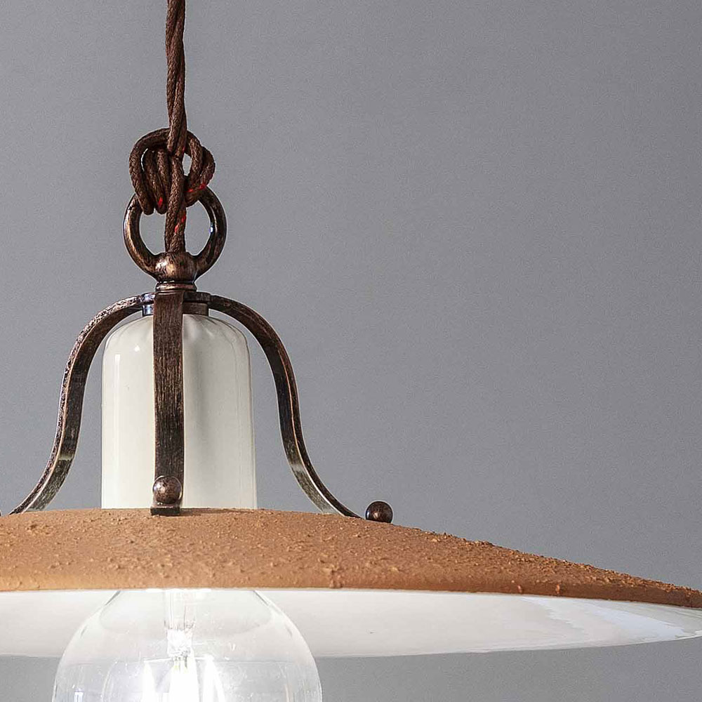 Llambë pezulluese lart e poshtë në hekur dhe qeramikë të papërpunuar dore - Bolonja