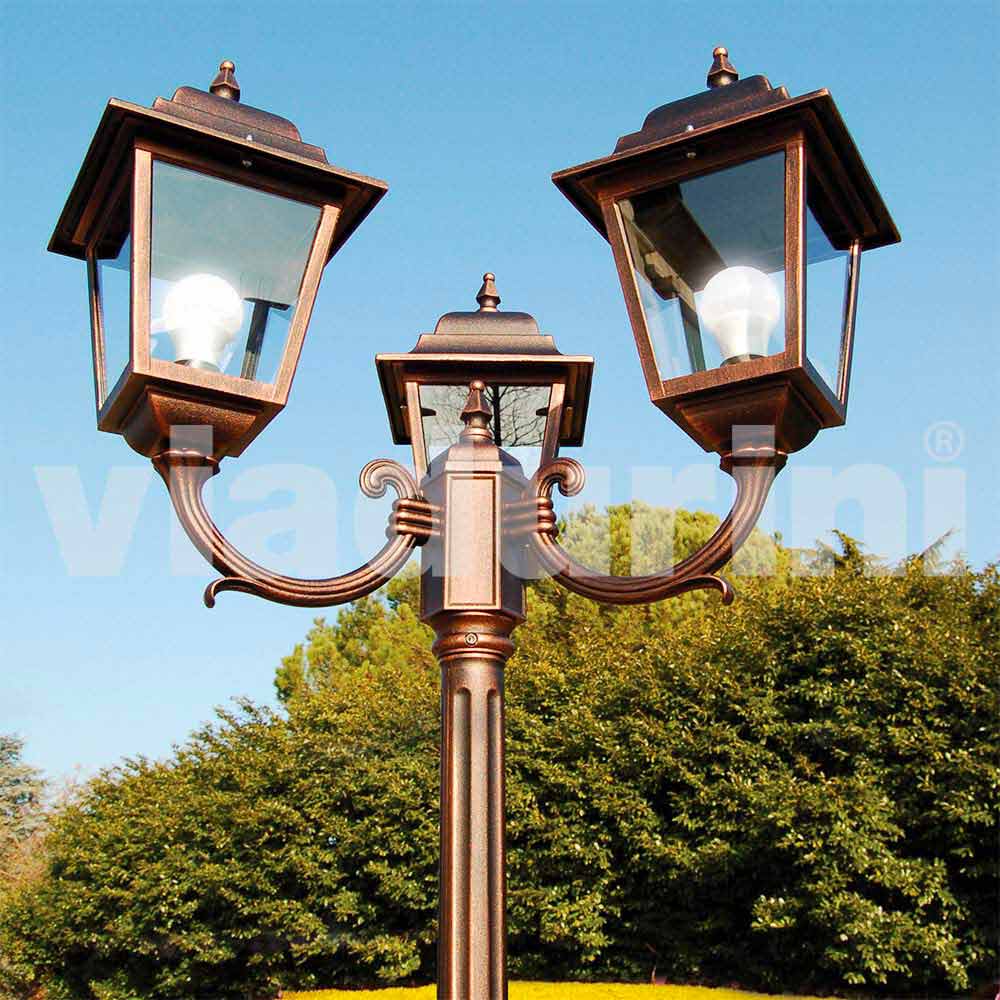 Llamba klasike e jashtme prej alumini e prodhuar në Itali, Aquilina Aquilina është një llambë kopshti me tre drita e punuar me dorë në Itali me material të cilësisë së lartë: strukturë alumini të derdhur dhe shpërndarës xhami të disponueshëm: transparent ose me rërë.
