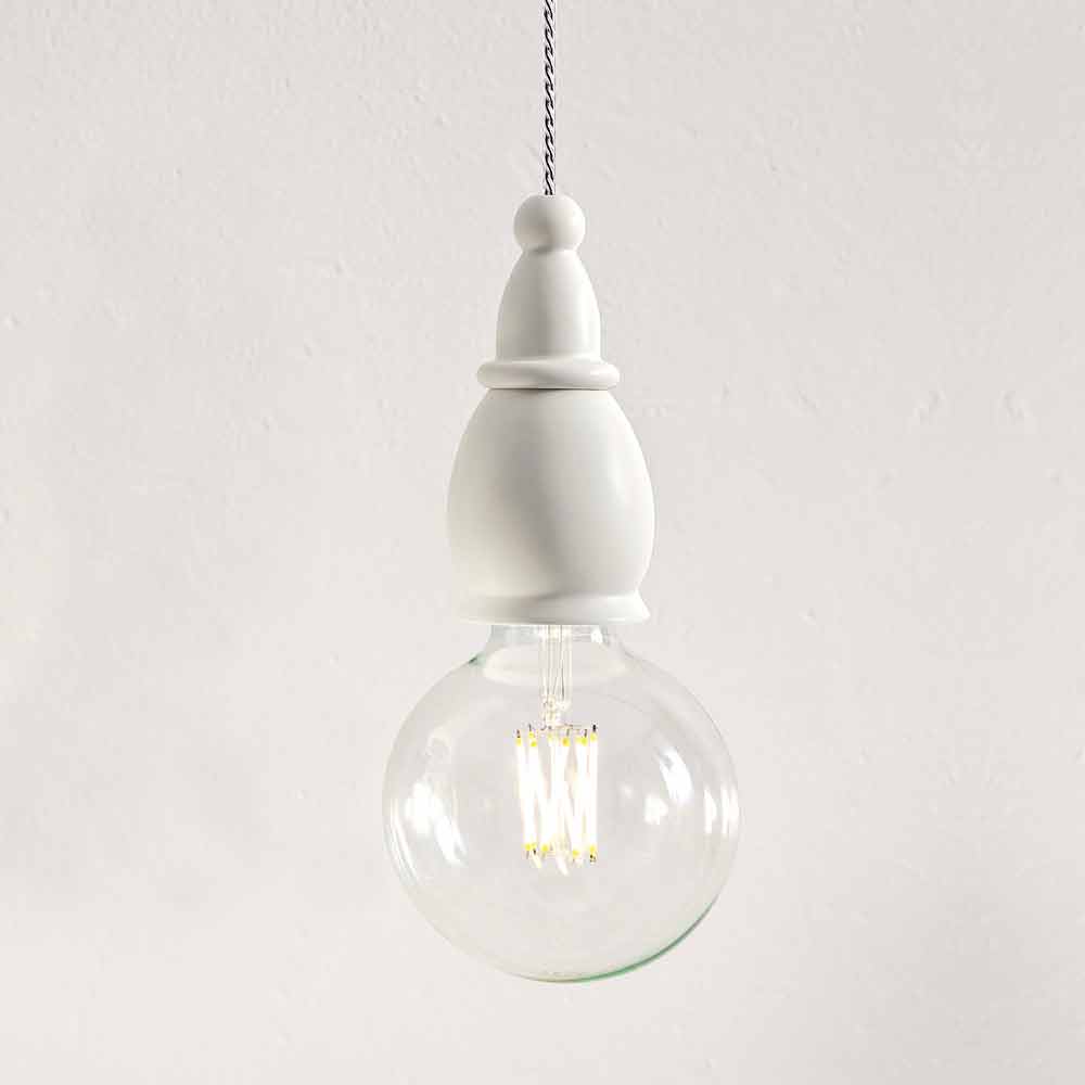 Dizajnoni llambë varëse në qeramikë me ngjyrë të bardhë, "Fati" nga Aldo Bernardi prodhuar në Itali.